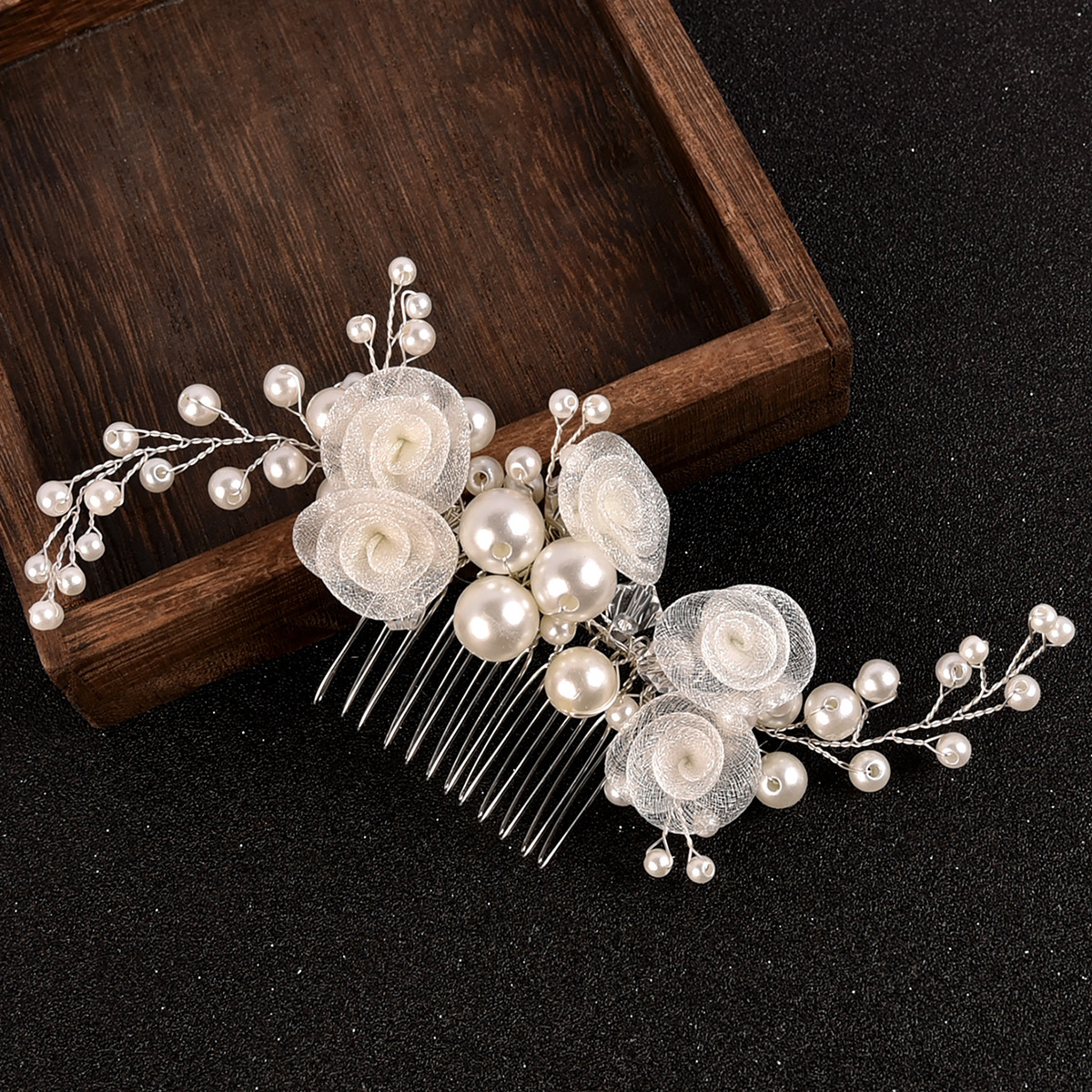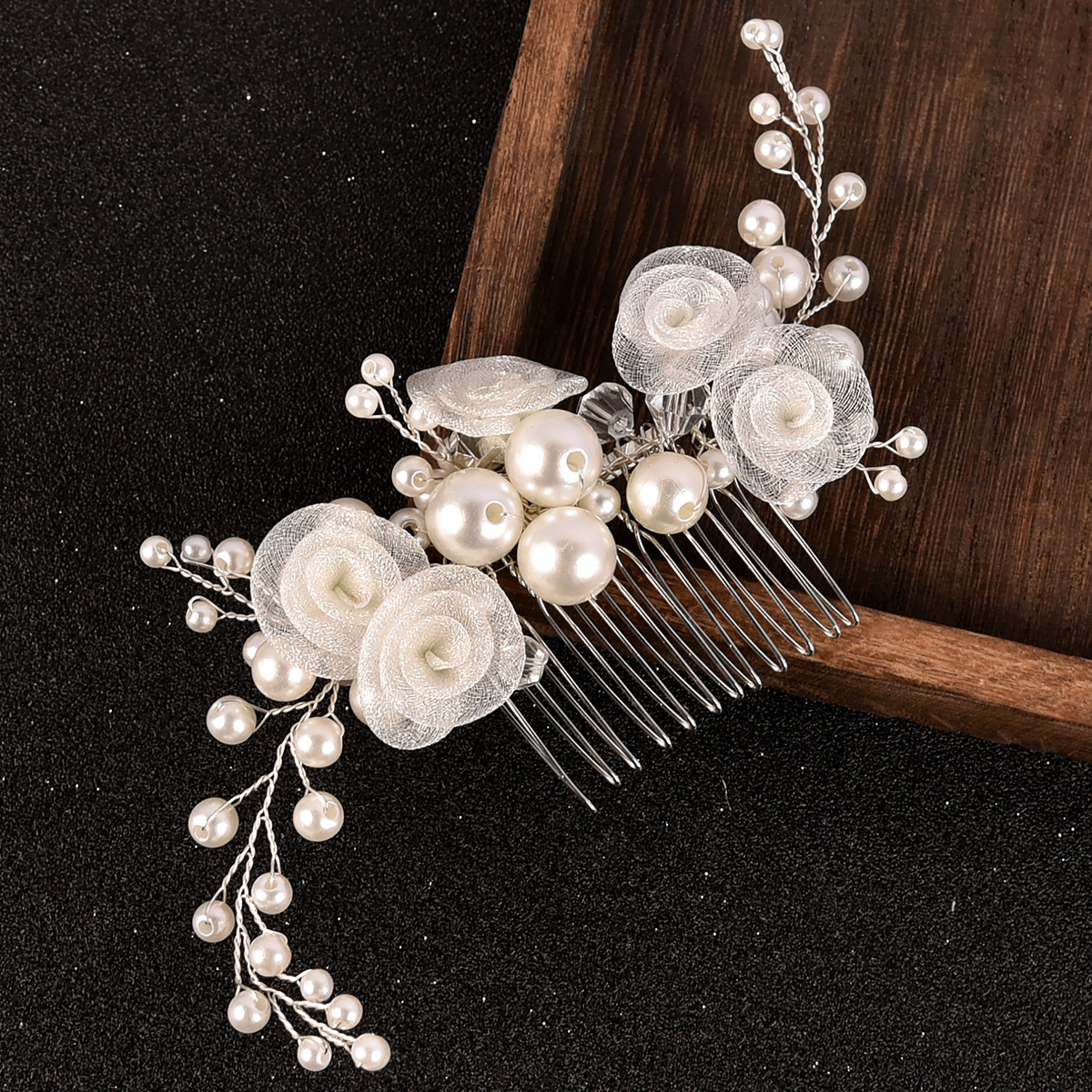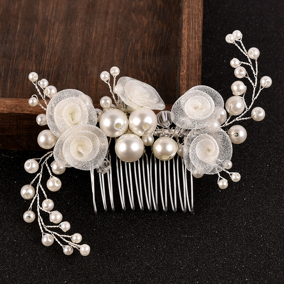 Braut Dekoratives Haarkämmchen, Zinklegierung, mit Gaze & Messingdraht & Kristall & Kunststoff Perlen, handgemacht, Modeschmuck & für Braut, weiß, 180x50x10mm, verkauft von PC