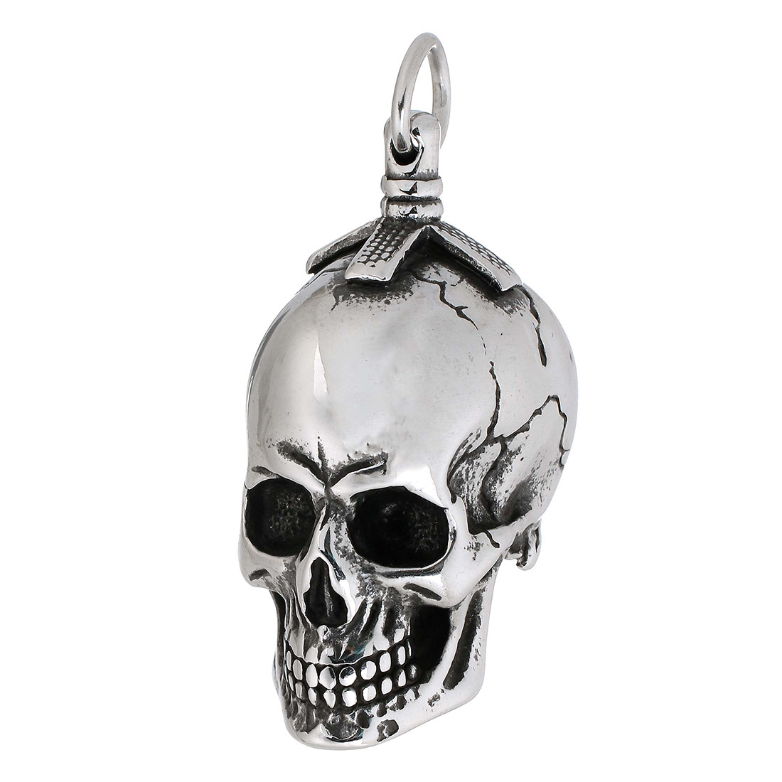 Edelstahl Schädel -Anhänger, Schwärzen, originale Farbe, 34x50x19mm, Bohrung:ca. 4mm, verkauft von PC