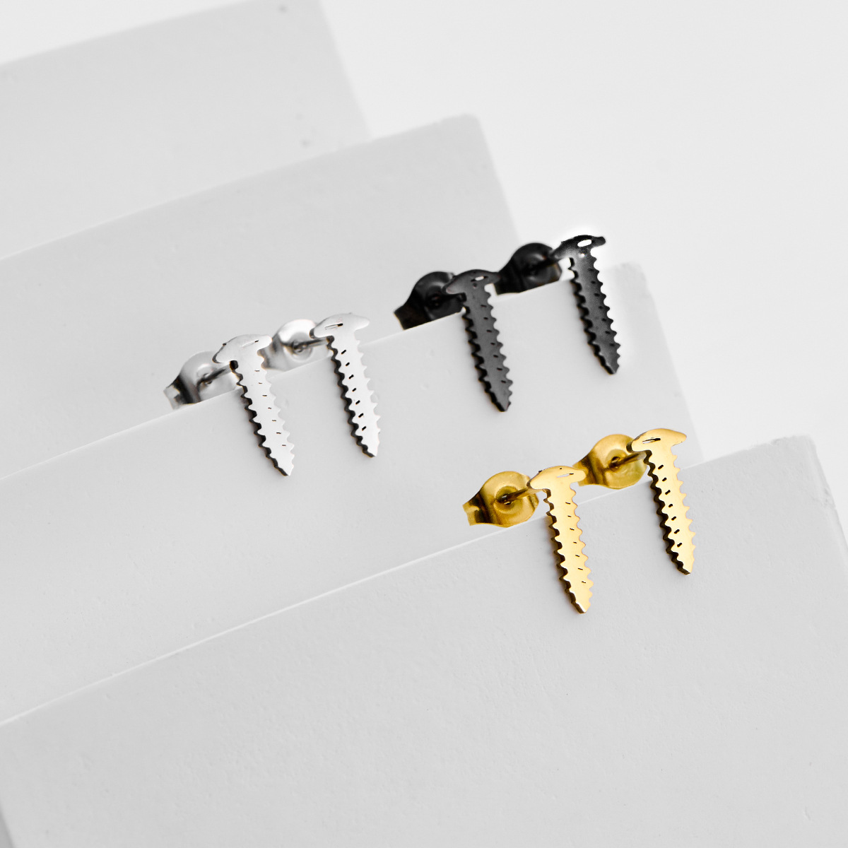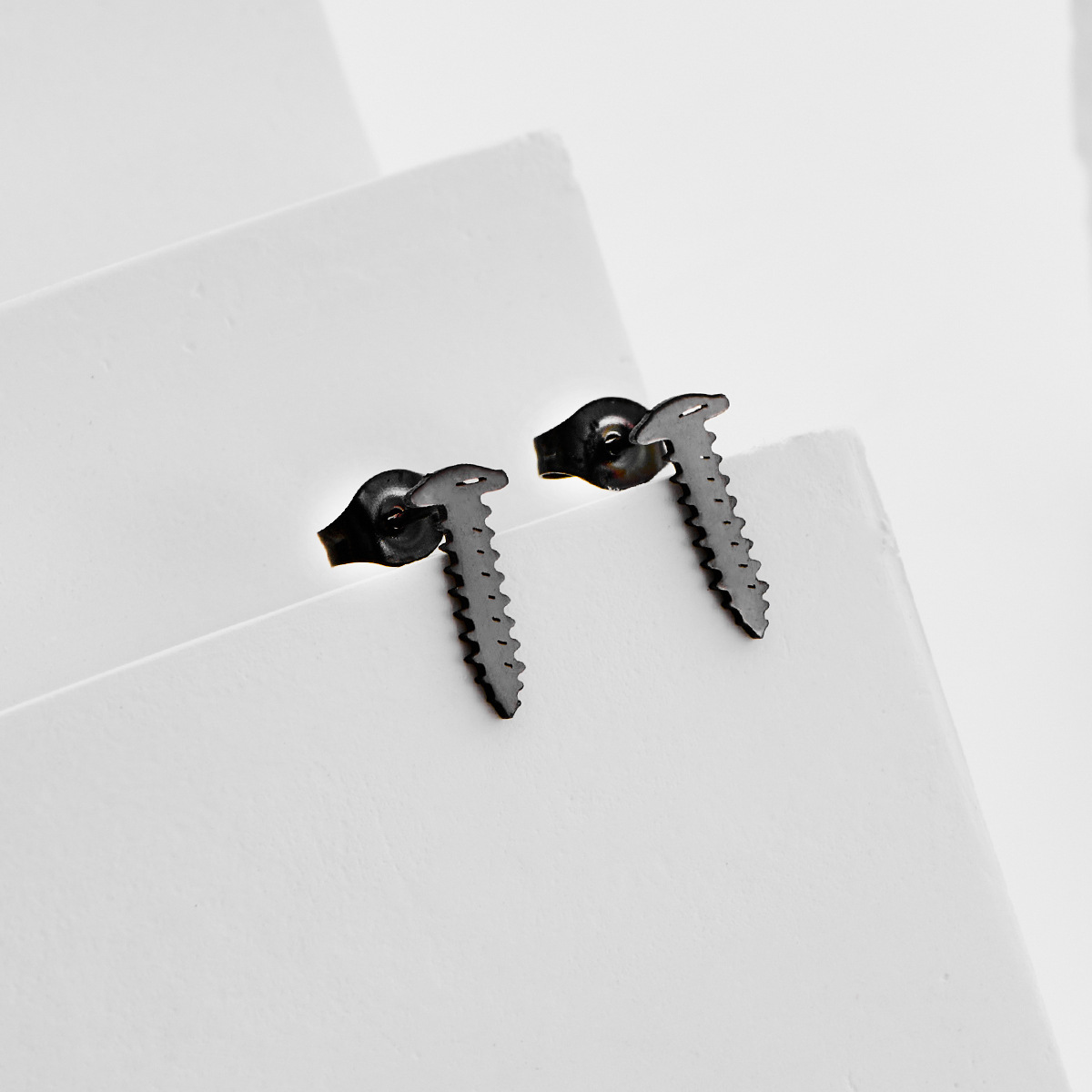 Edelstahl Stud Ohrring, Schwert Kreuz, mit kubischem Zirkonia & Schwärzen, keine, 8x13x4mm, verkauft von Paar