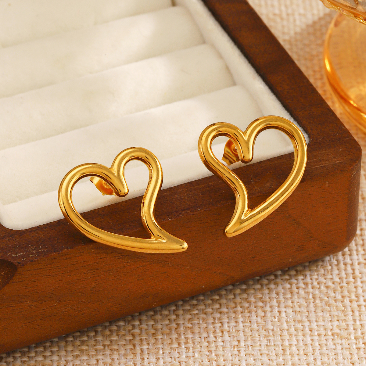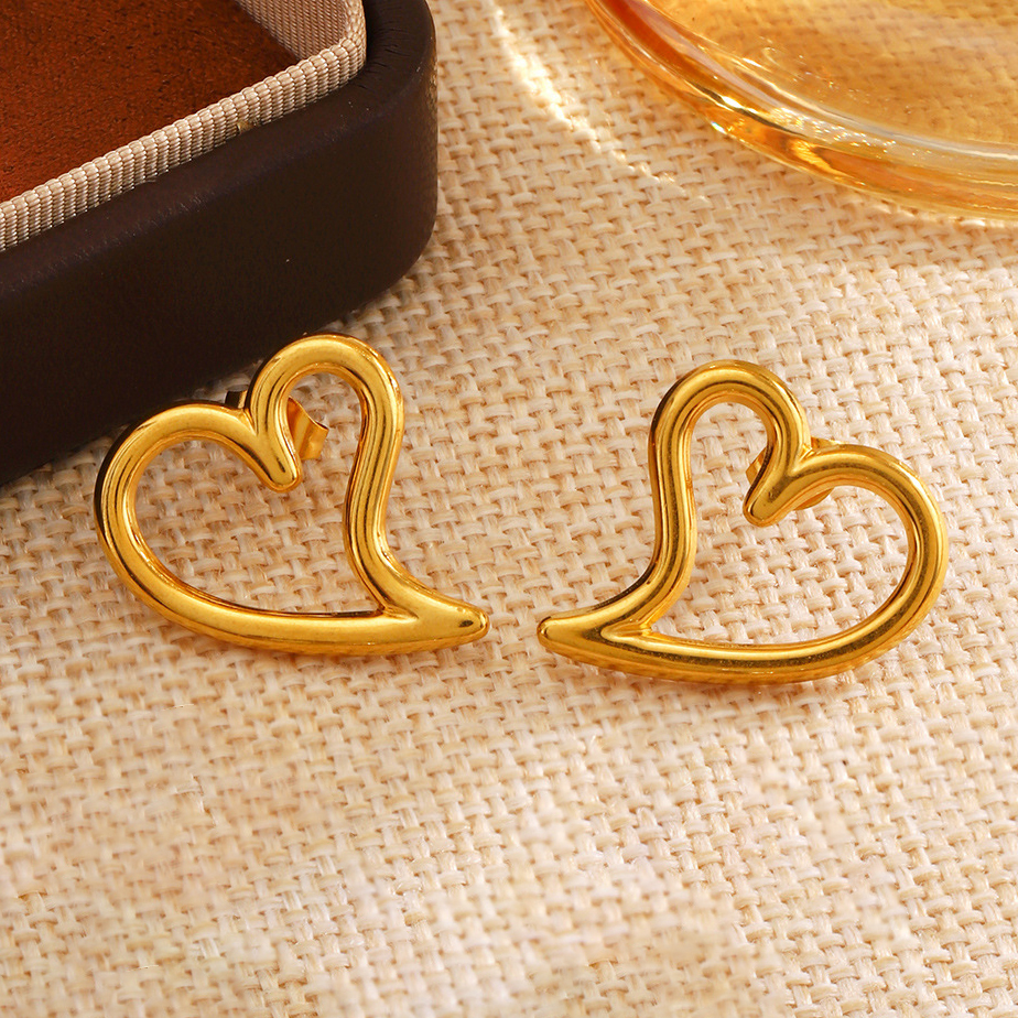 Edelstahl Stud Ohrring, 304 Edelstahl, Herz, 18K vergoldet, Modeschmuck & für Frau & hohl, verkauft von Paar
