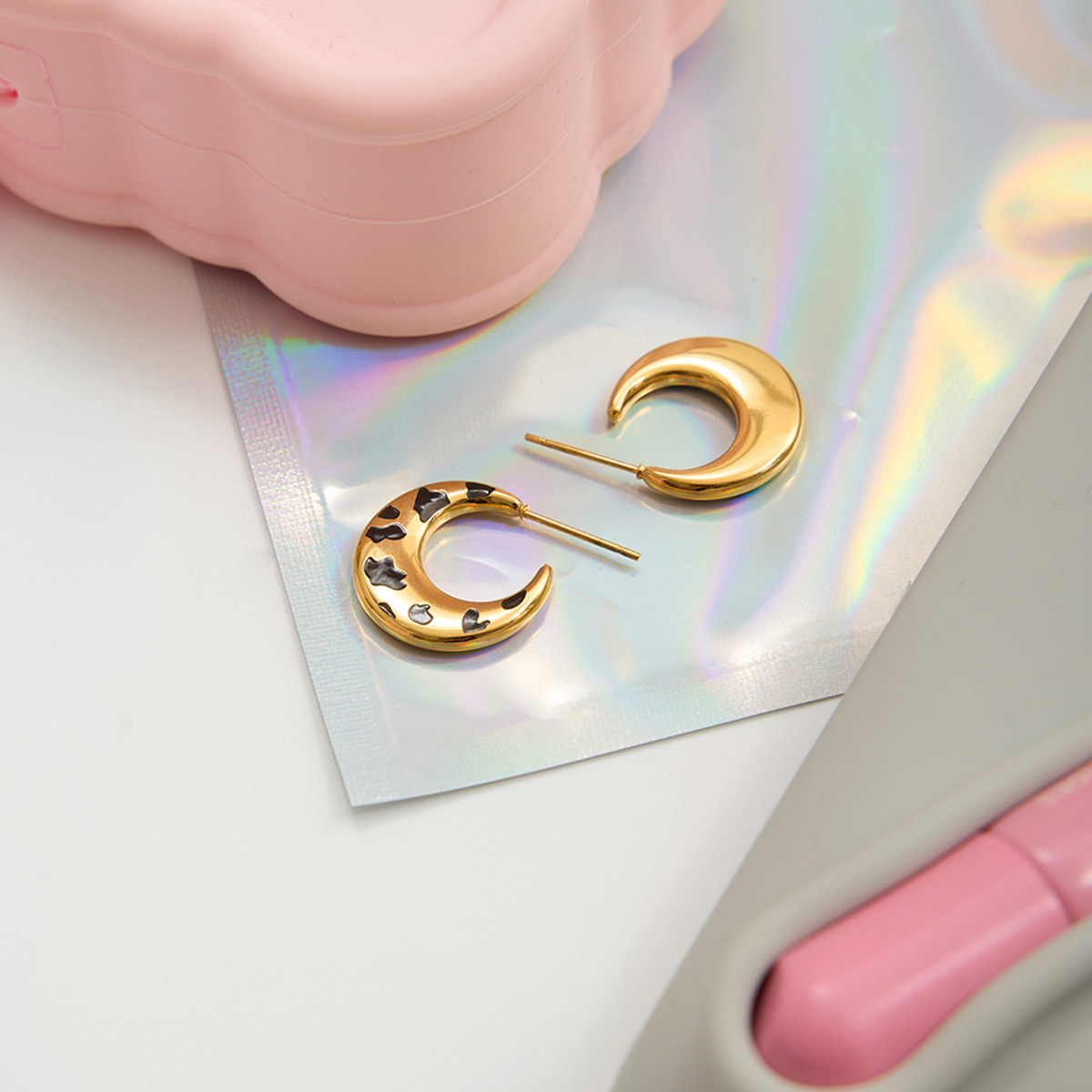 Edelstahl Stud Ohrring, 304 Edelstahl, goldfarben plattiert, Modeschmuck & Emaille, keine, 100x100x30mm, verkauft von Paar