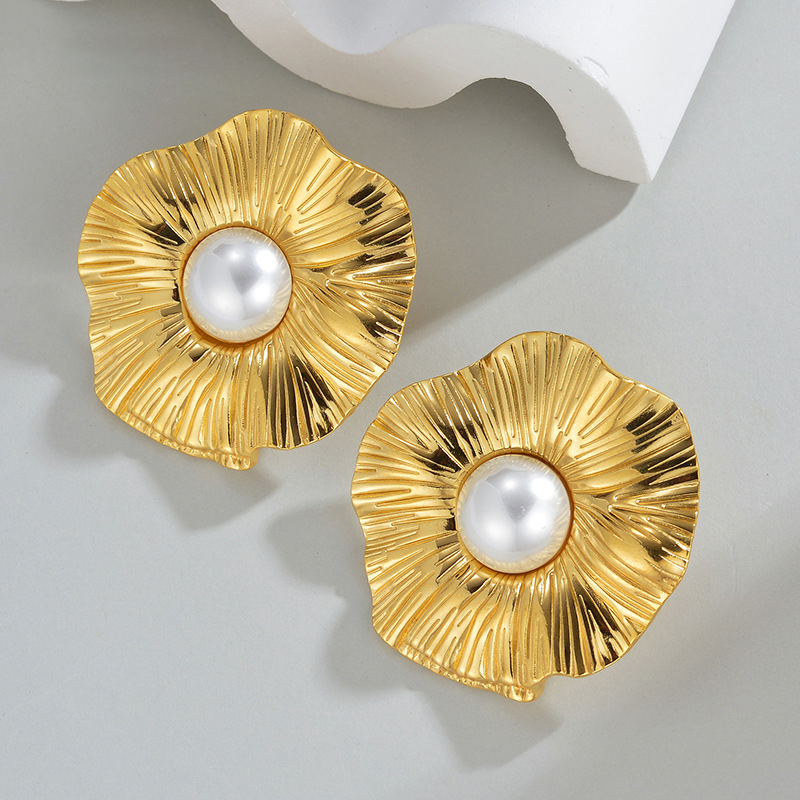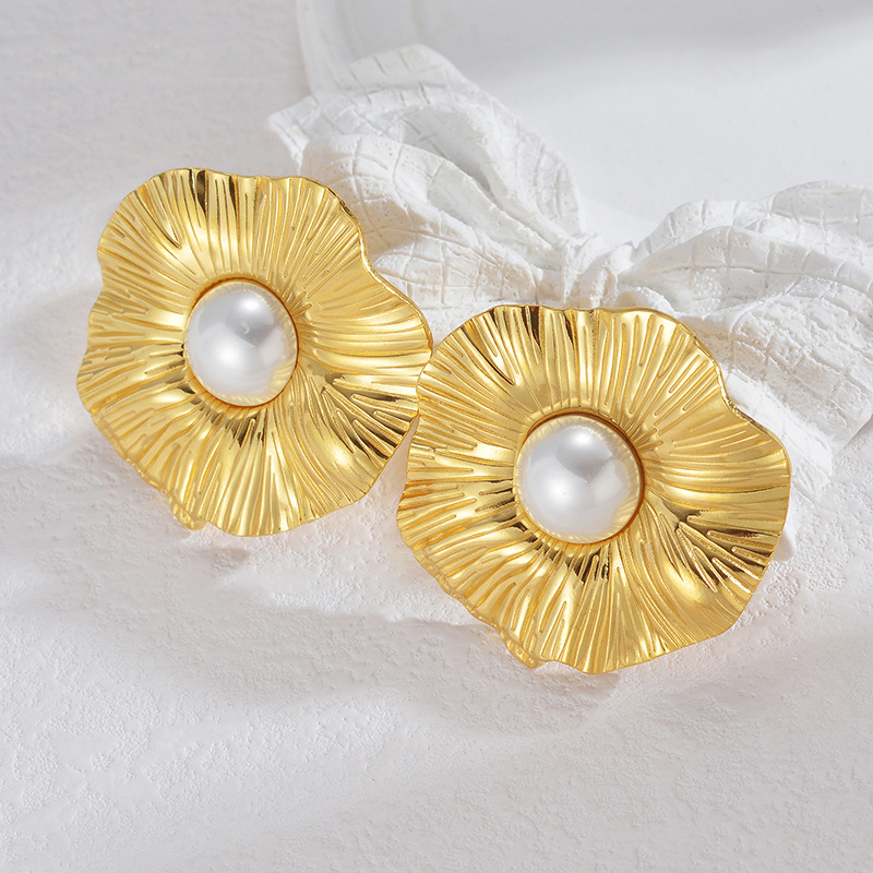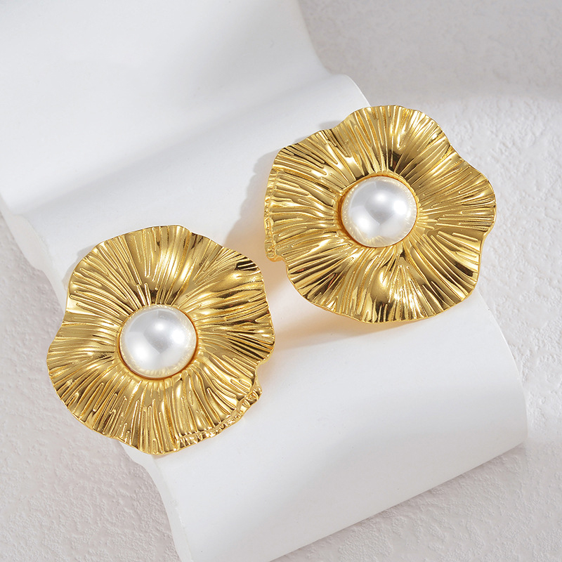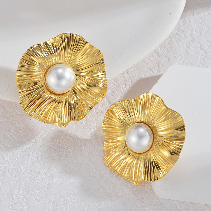 Edelstahl Stud Ohrring, 304 Edelstahl, mit Kunststoff Perlen, Blume, 18K vergoldet, Modeschmuck & für Frau, verkauft von Paar