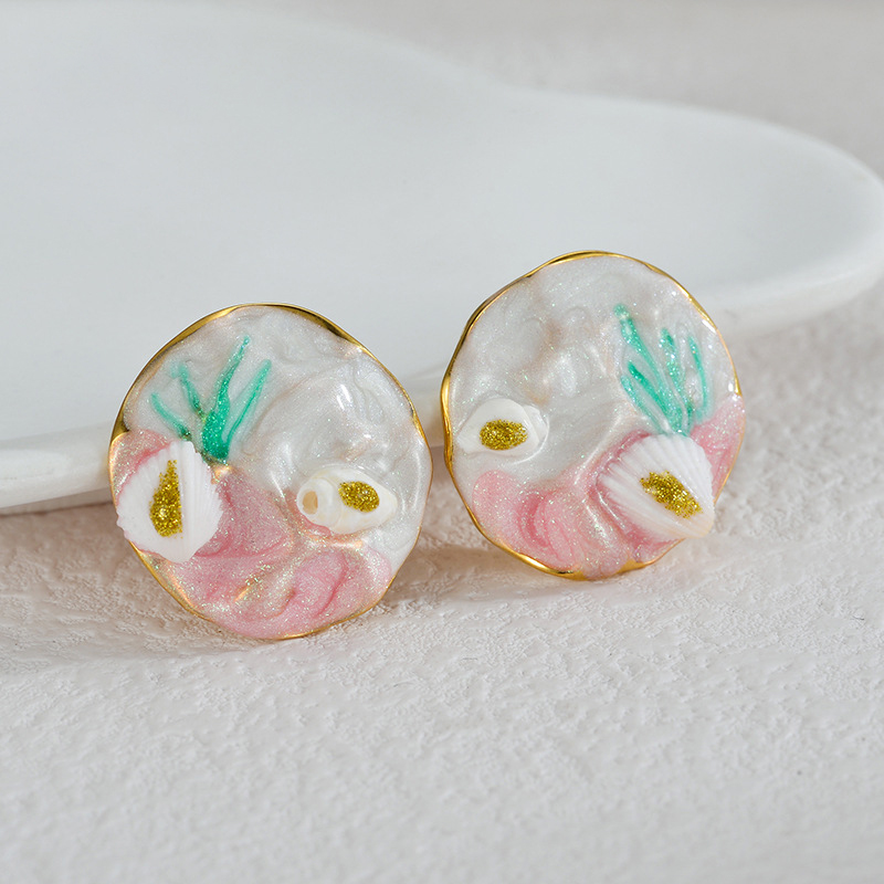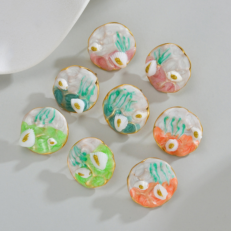 Edelstahl Stud Ohrring, 304 Edelstahl, mit Muschel, goldfarben plattiert, Modeschmuck & für Frau & Emaille, keine, verkauft von Paar