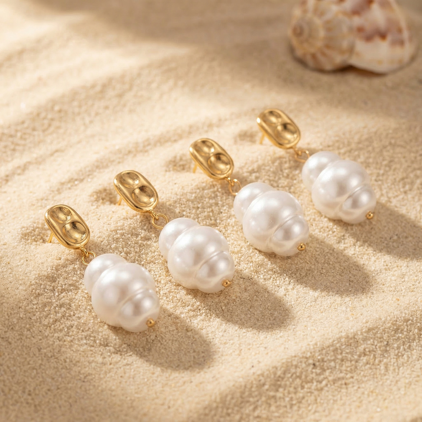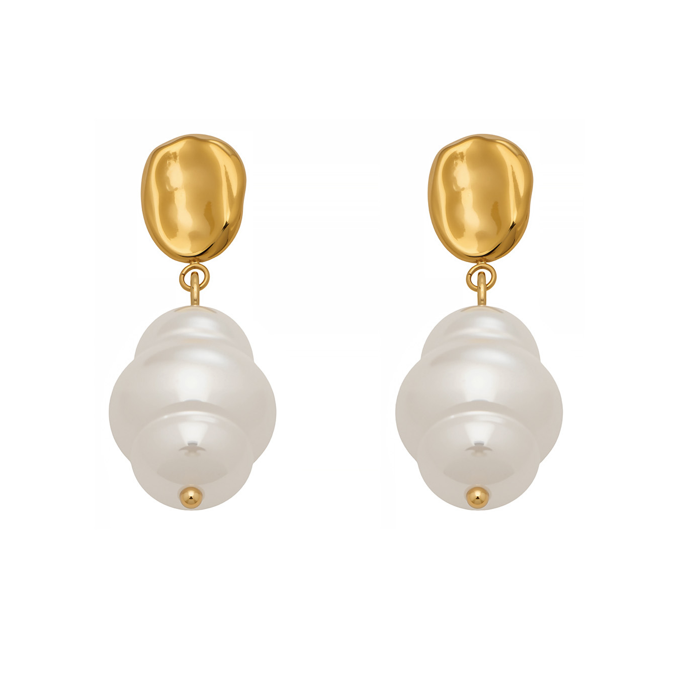 Edelstahl Tropfen Ohrring, mit Kunststoff Perlen, goldfarben plattiert, für Frau, weiß, 13x35mm, verkauft von Paar