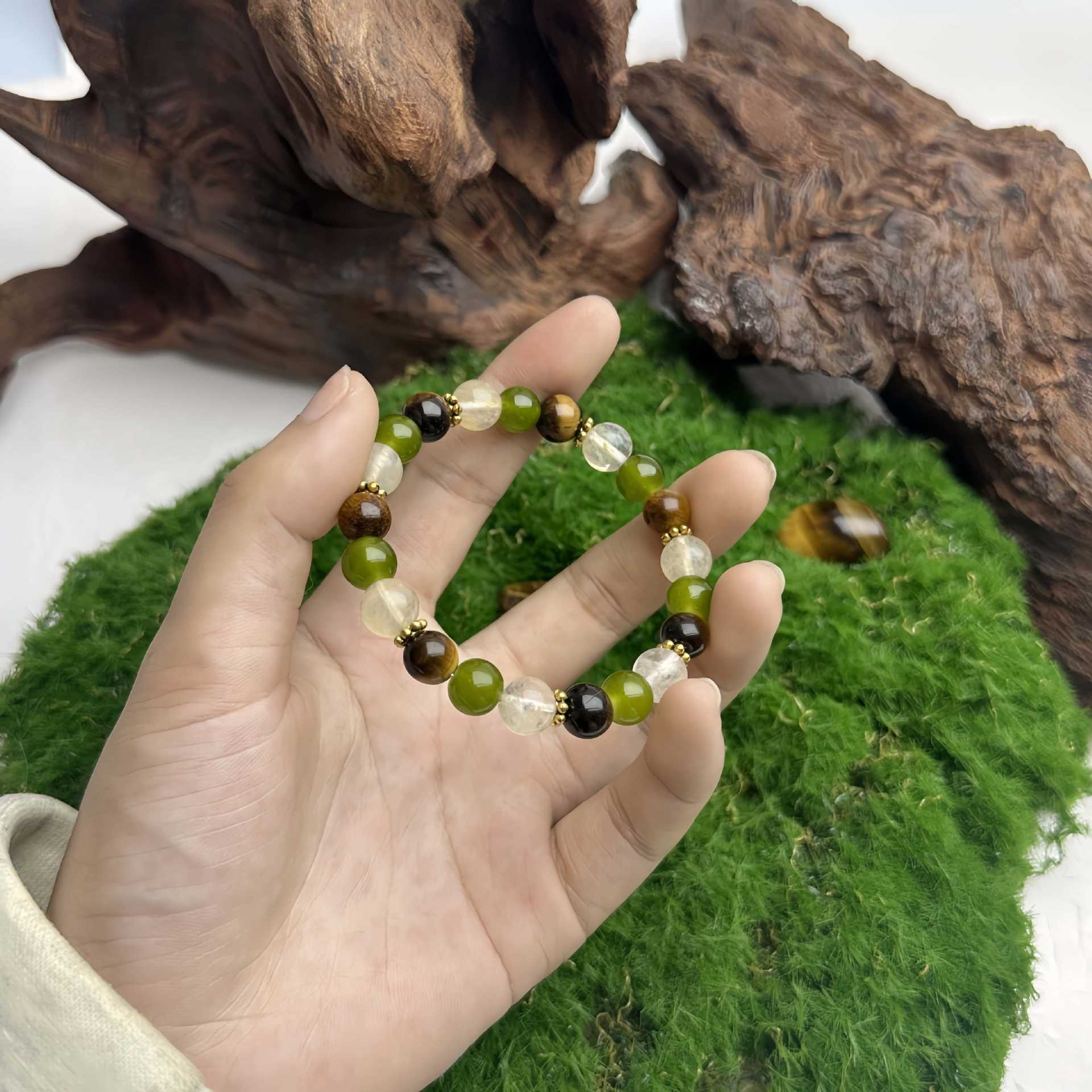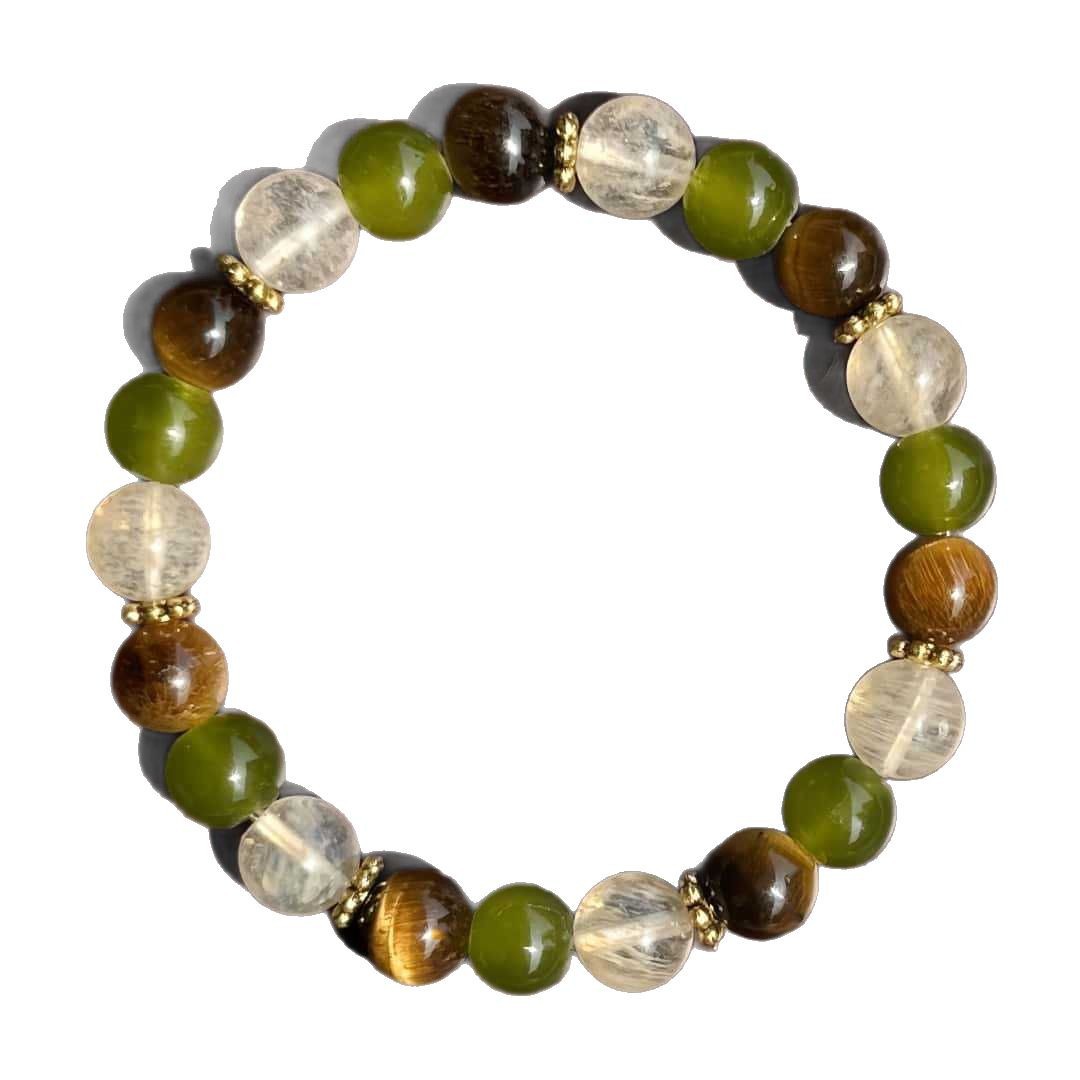 Edelstein Armbänder, Tigerauge, mit Prehnit & Klarer Quarz, goldfarben plattiert, Modeschmuck, keine, verkauft von PC