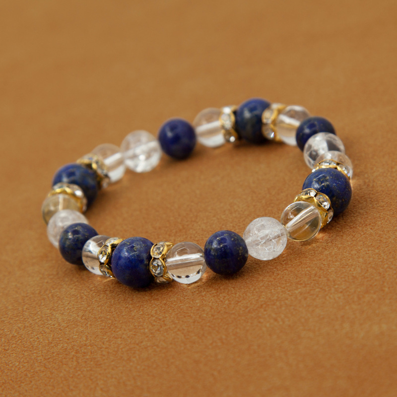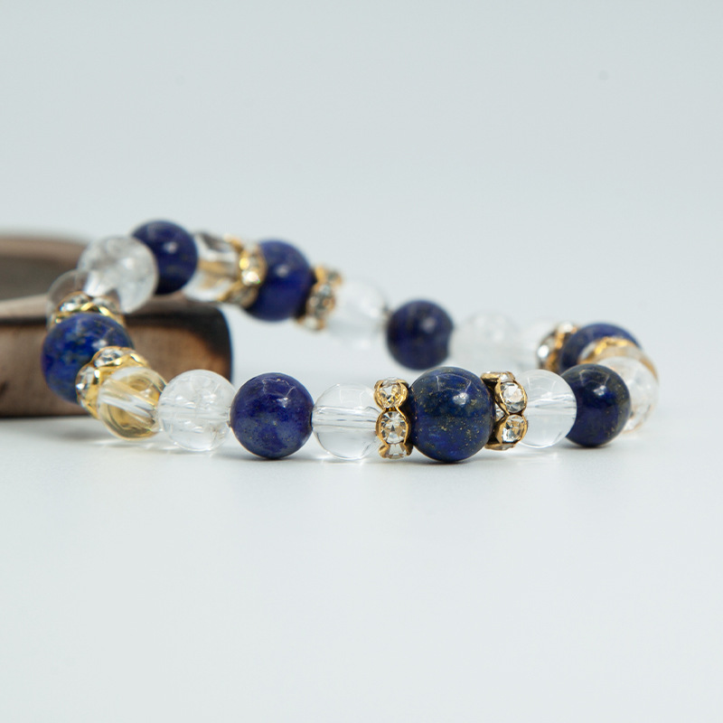 Edelstein Armbänder, Lapislazuli, mit Knistern Quarz & Klarer Quarz & Eisen, Modeschmuck & mit Strass, gemischte Farben, 10mm, Länge:ca. 20 cm, verkauft von PC