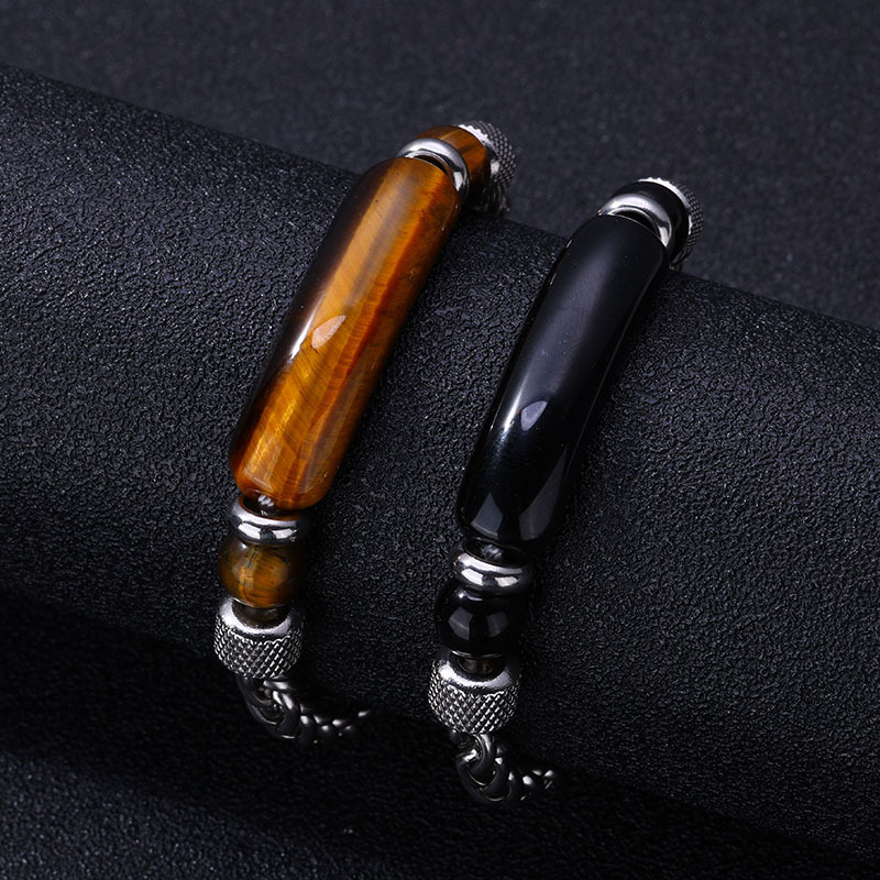 Edelstein Armbänder, 304 Edelstahl, mit Obsidian & Tigerauge, goldfarben plattiert, Modeschmuck, keine, verkauft von PC