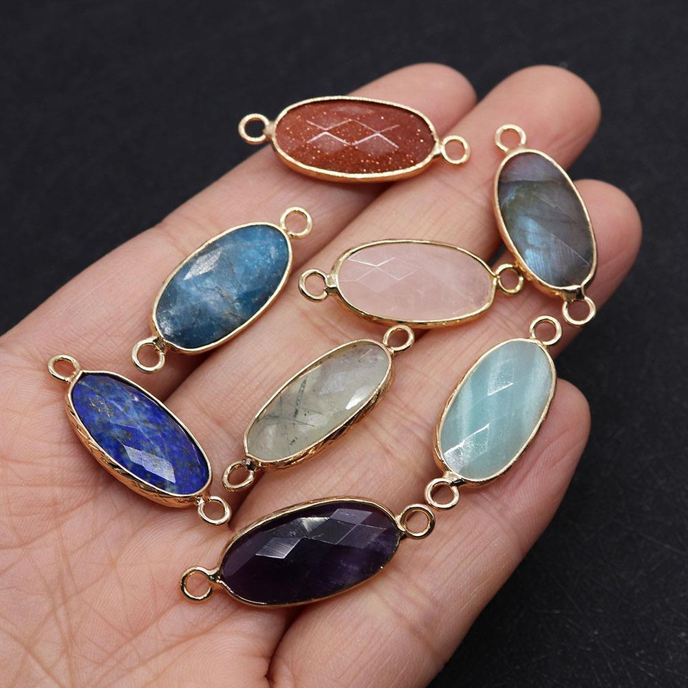 Edelstein Connector, mit Messing, oval, DIY & verschiedenen Materialien für die Wahl & facettierte, 11x30mm, verkauft von PC