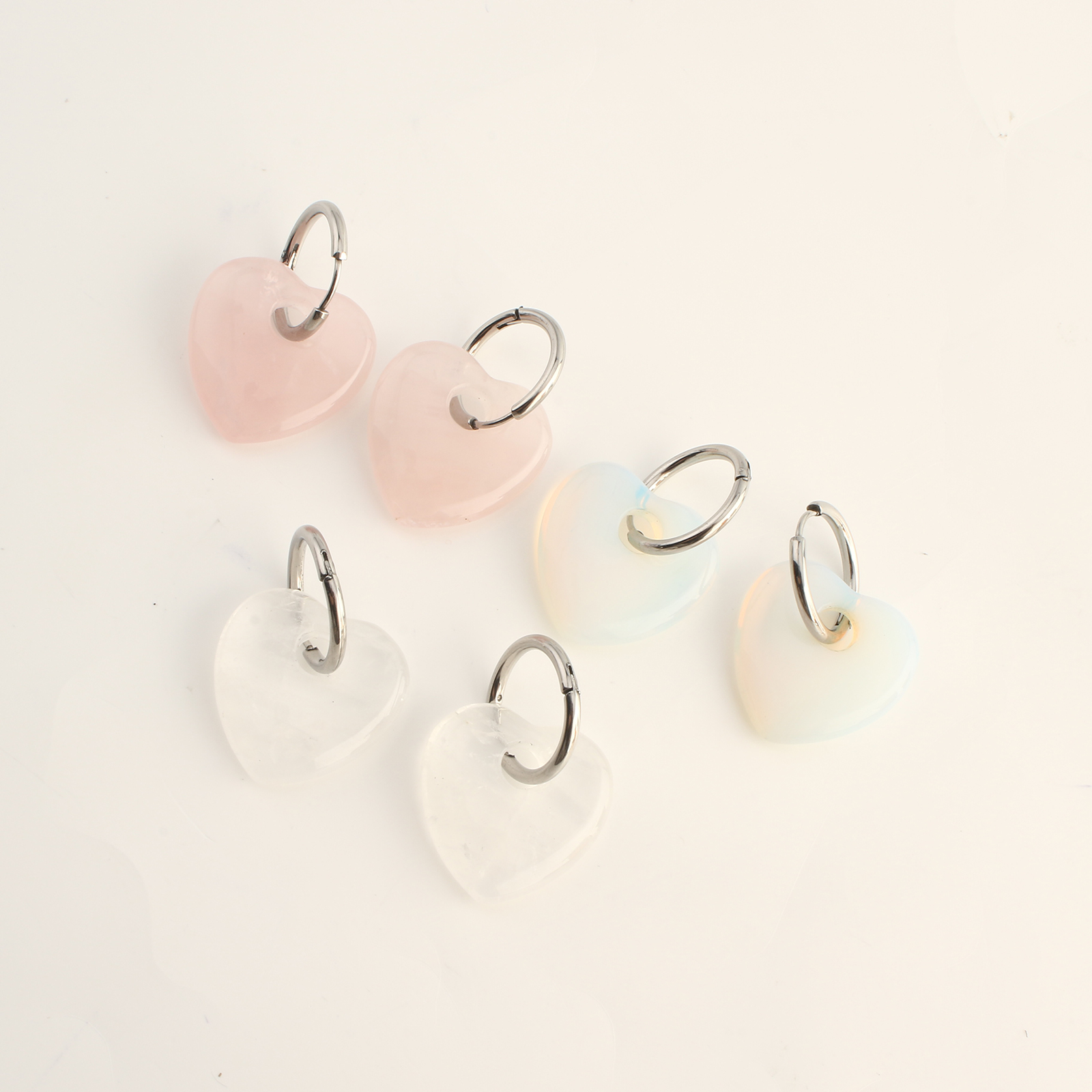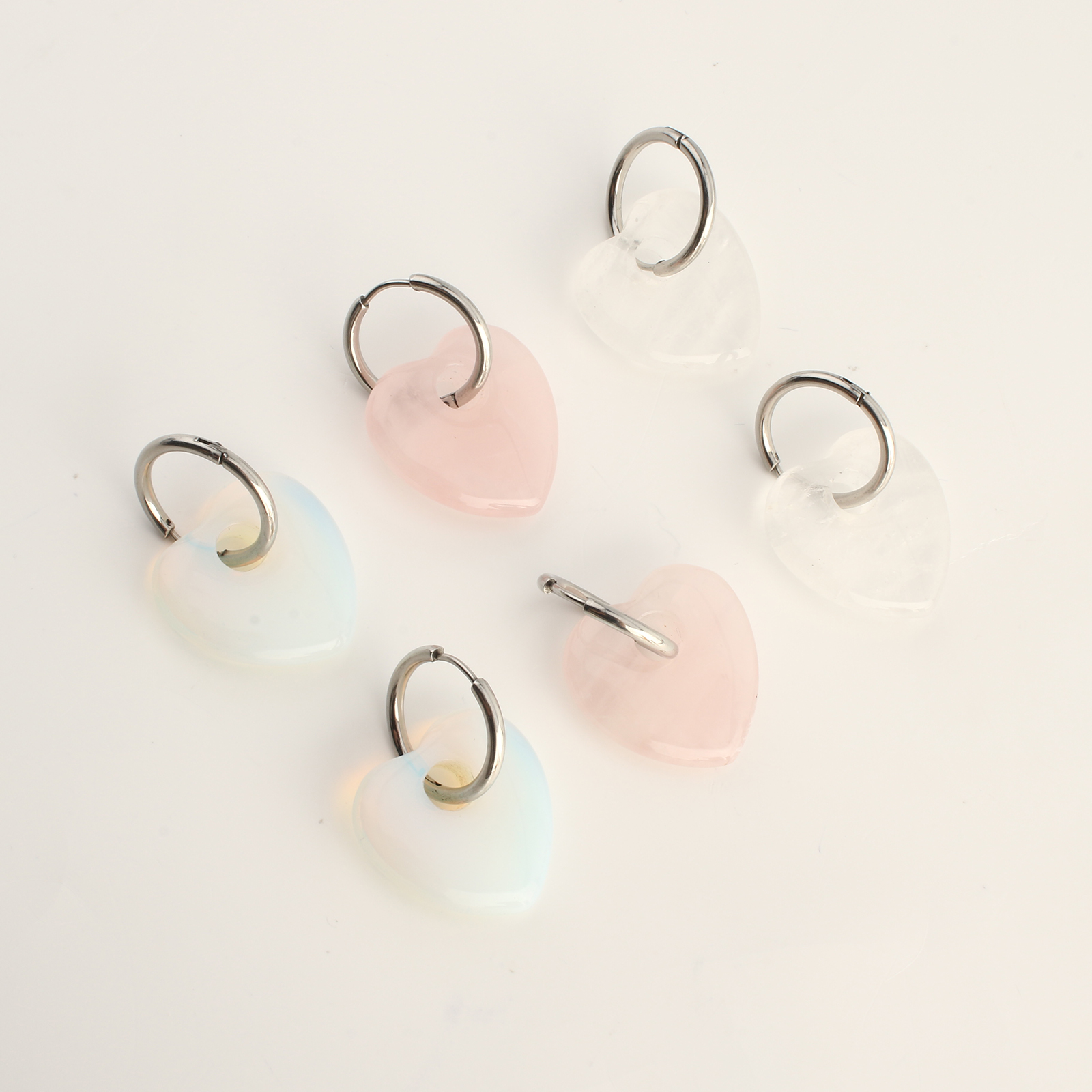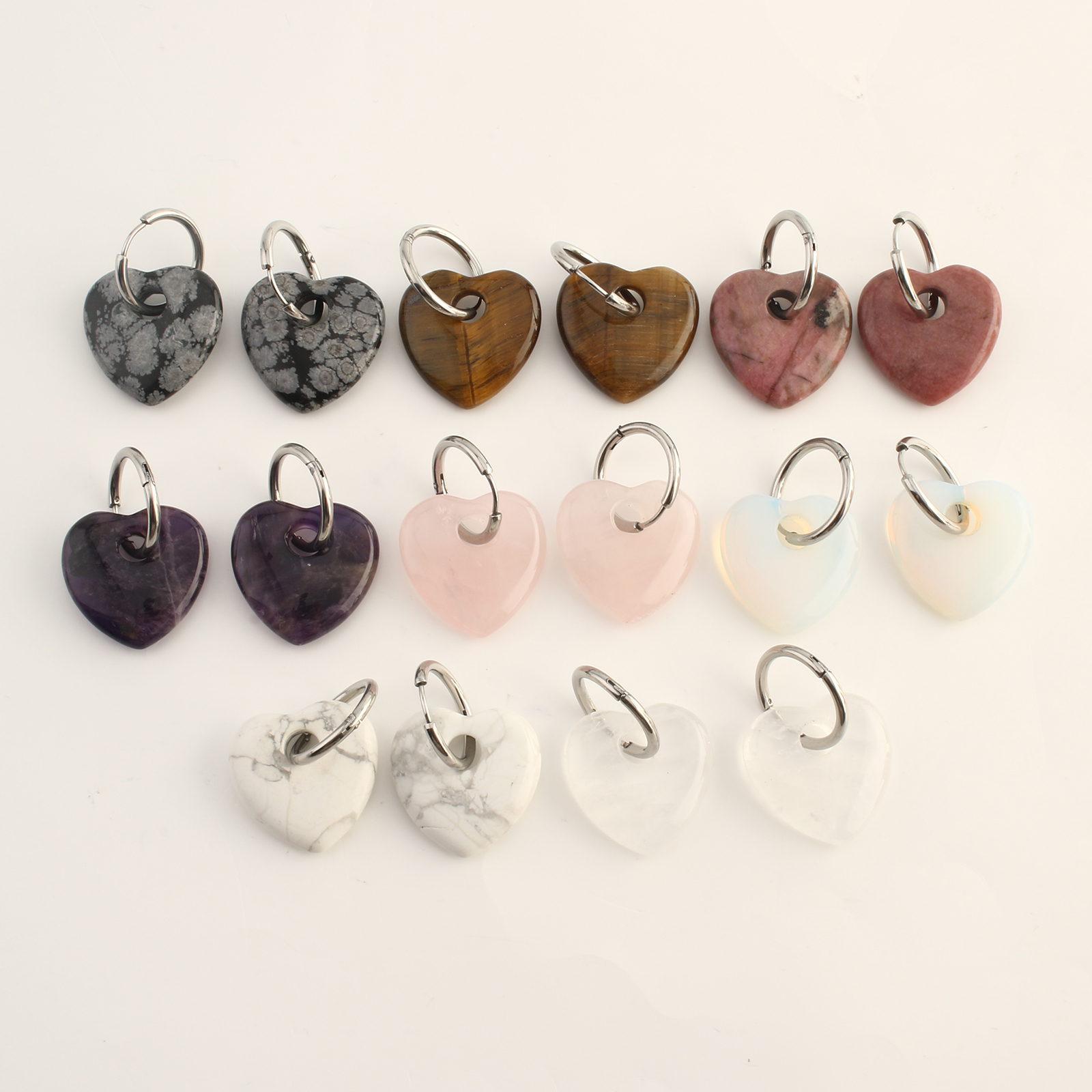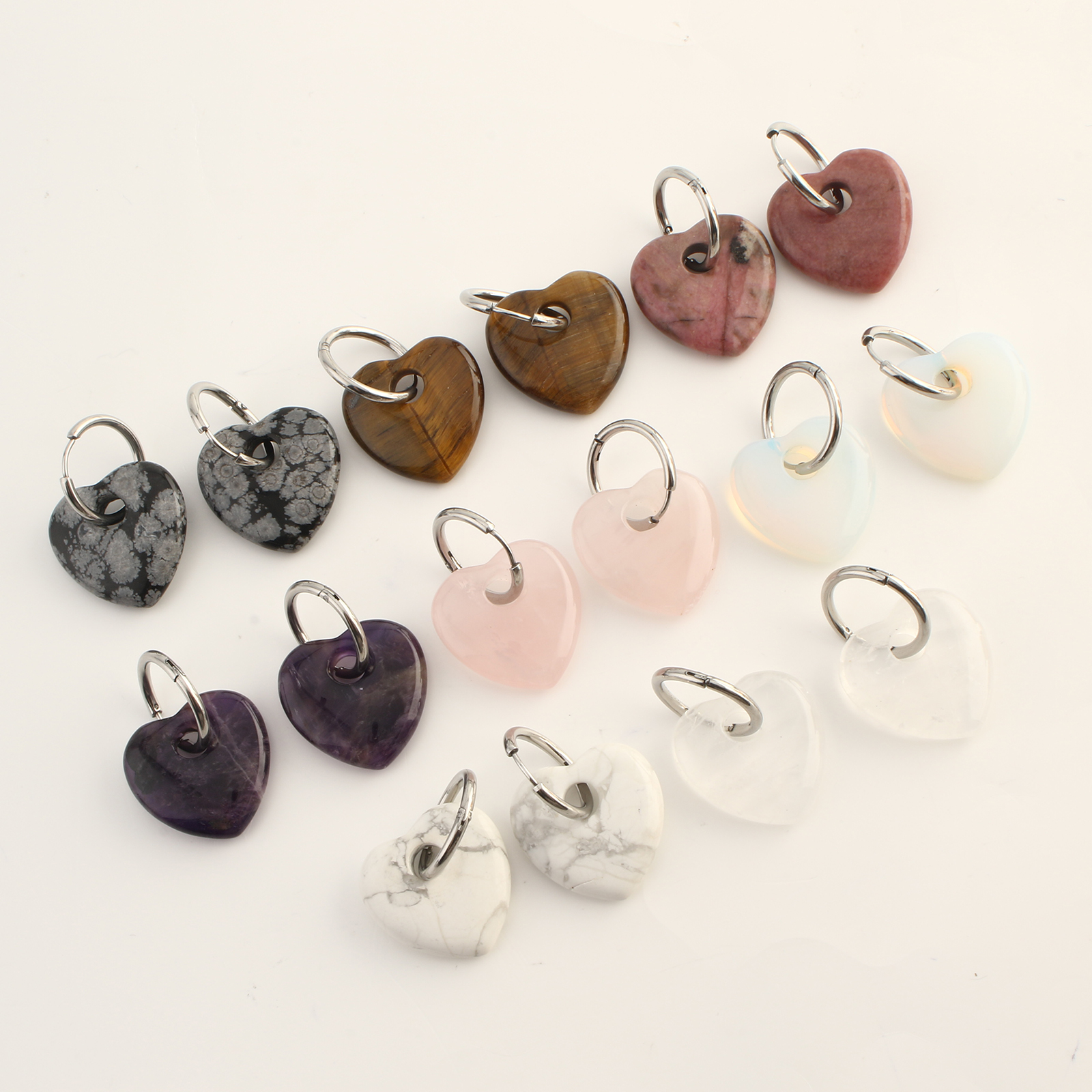 Edelstein Tropfen Ohrring, mit 304 Edelstahl, Herz, Modeschmuck & verschiedenen Materialien für die Wahl & für Frau, 35x24x6mm, verkauft von Paar