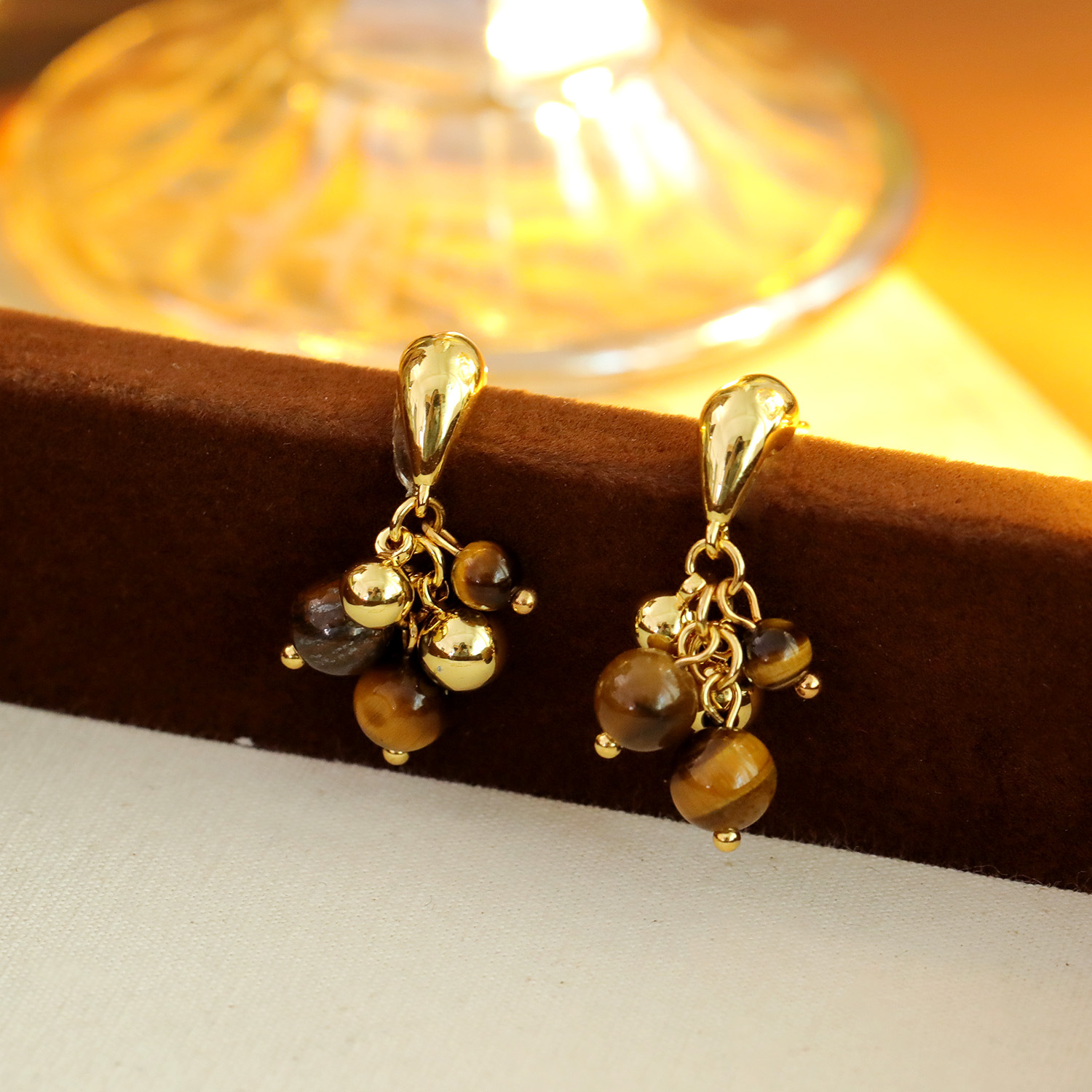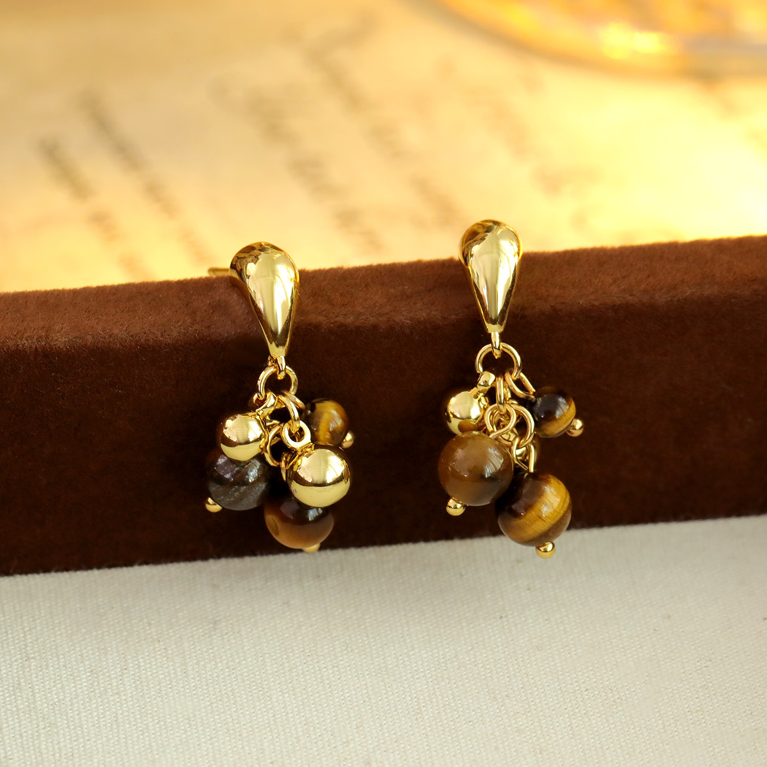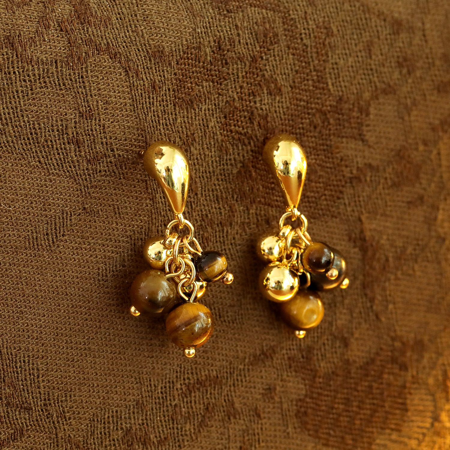 Edelstein Tropfen Ohrring, Messing, mit Tigerauge, Traube, 18K vergoldet, Modeschmuck & für Frau, 29x5mm, verkauft von Paar