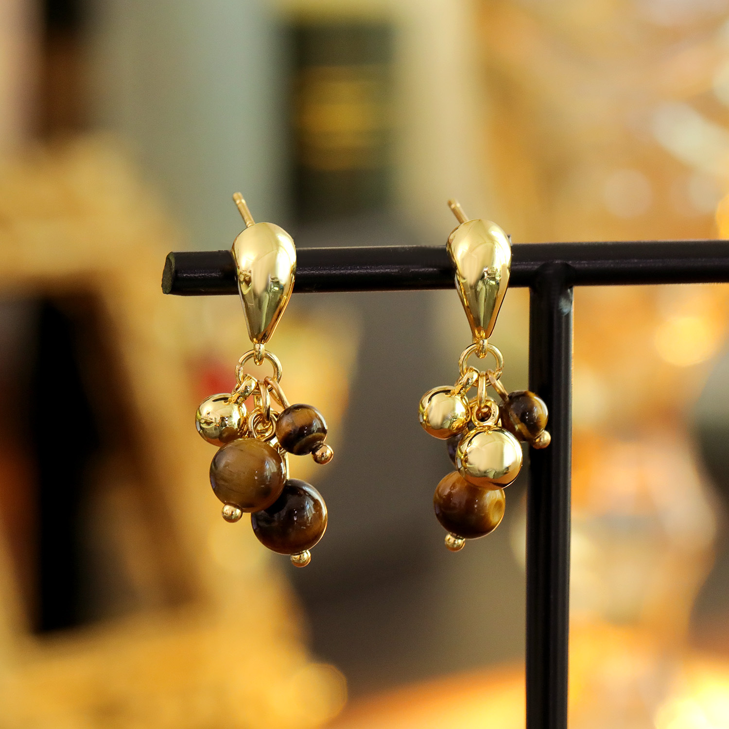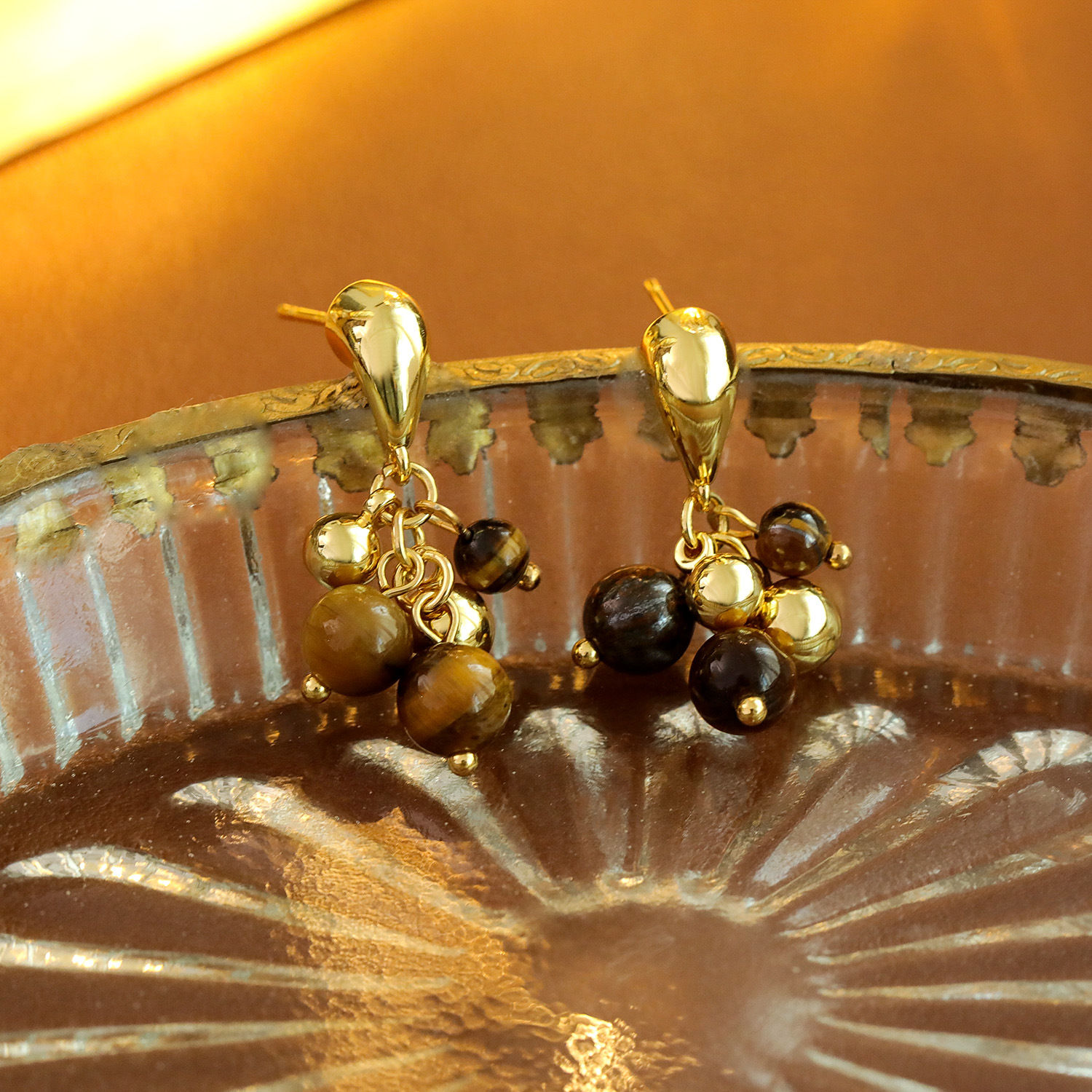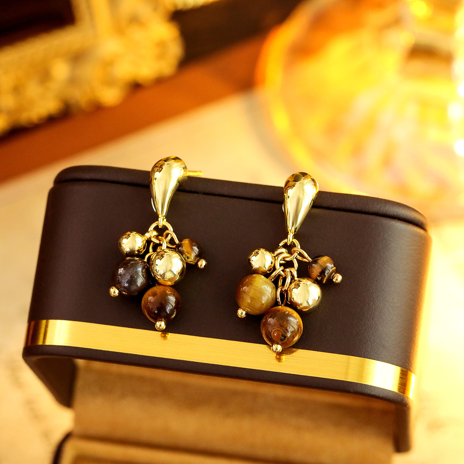 Edelstein Tropfen Ohrring, Messing, mit Tigerauge, Traube, 18K vergoldet, Modeschmuck & für Frau, 29x5mm, verkauft von Paar
