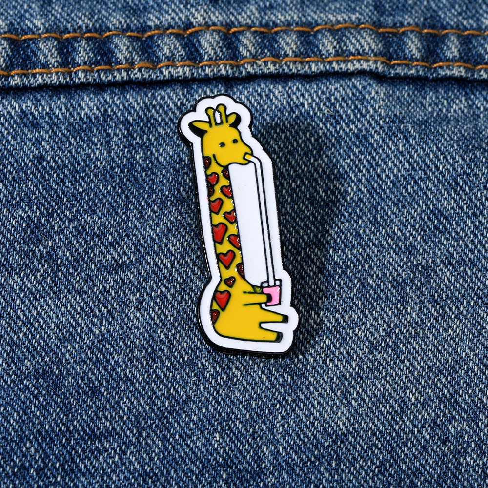 Emaille -Brosche, Zinklegierung, Giraffe, plattiert, unisex, schwarz, verkauft von PC