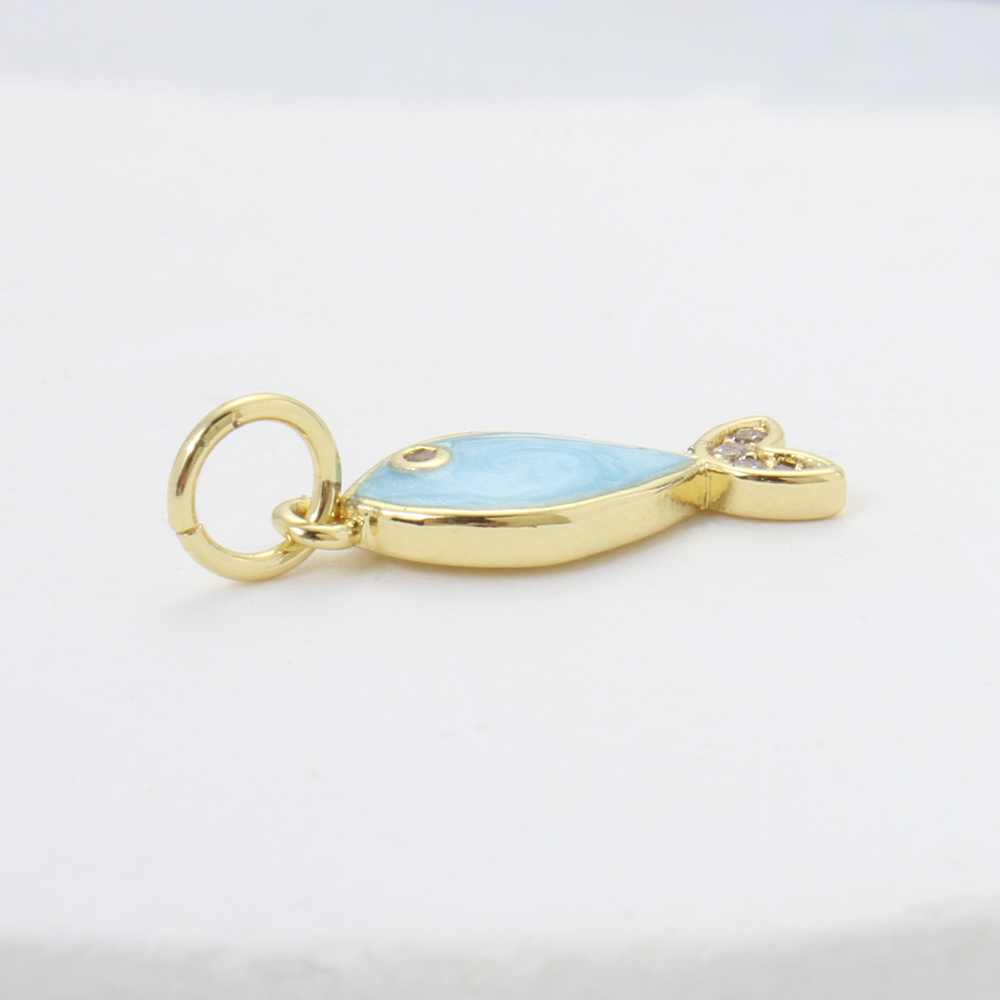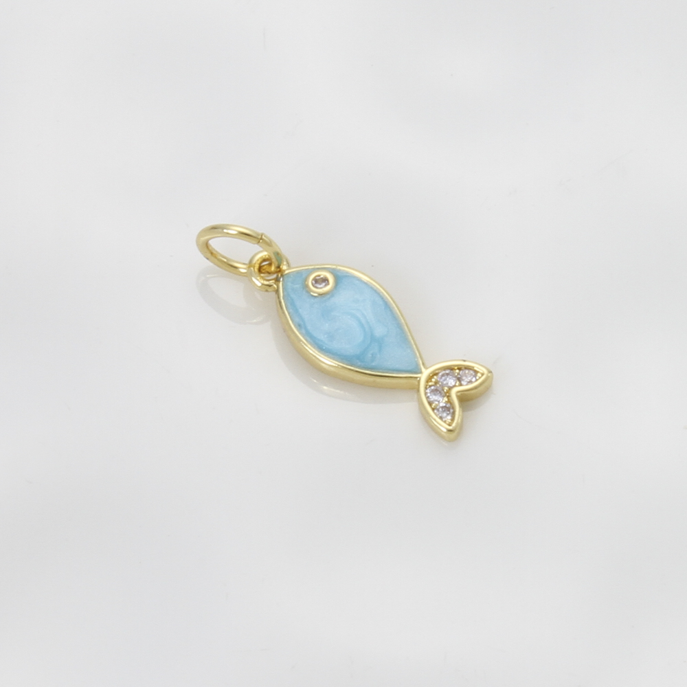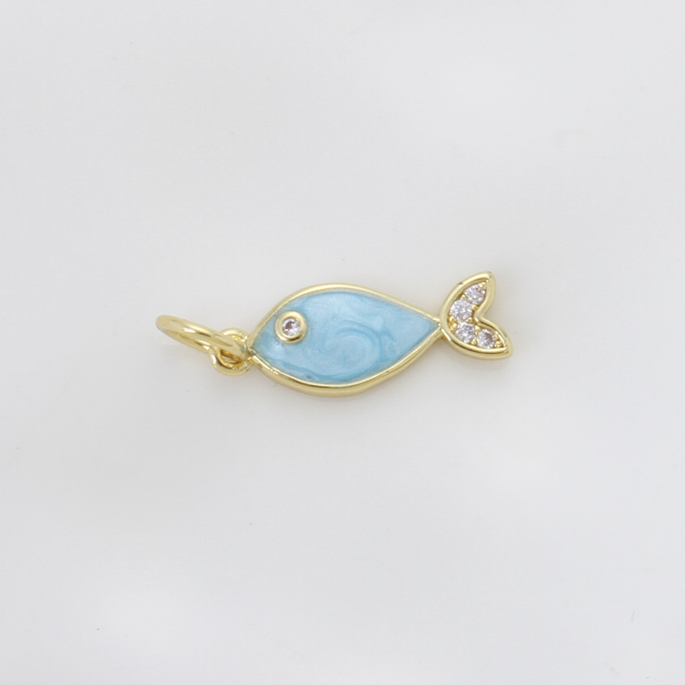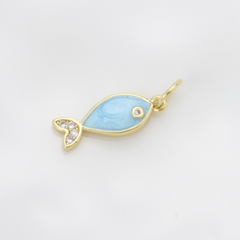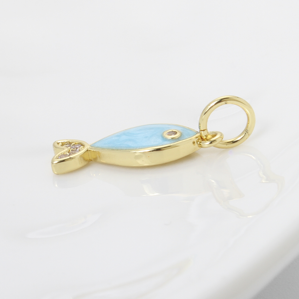 Emaille Messing Anhänger, Fisch, plattiert, DIY & Micro pave Zirkonia, blau, 15.4x6x2mm, verkauft von PC