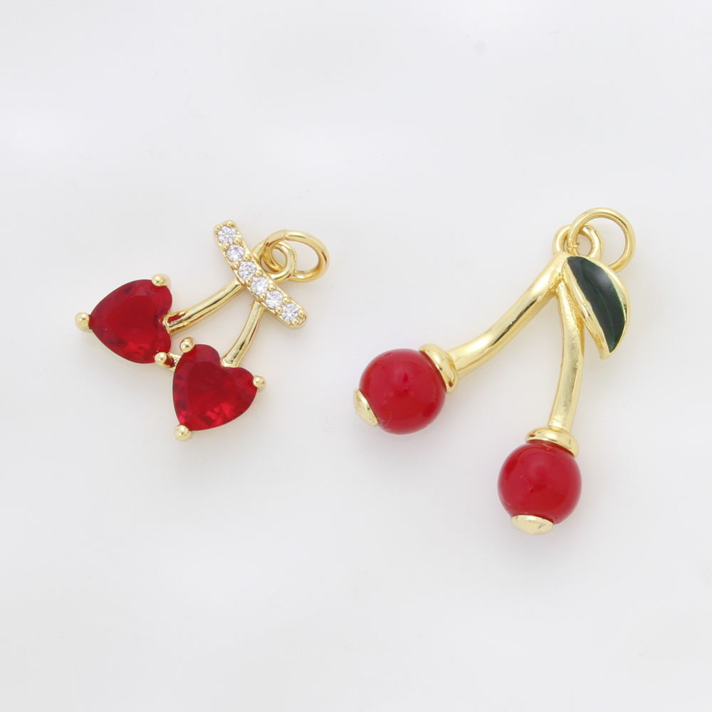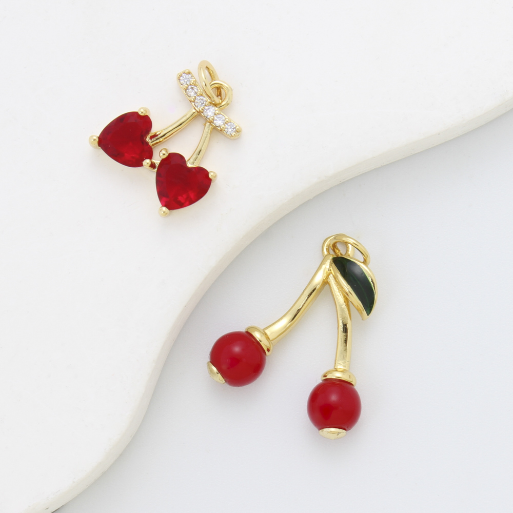 Emaille Messing Anhänger, Kirsche, plattiert, DIY & Micro pave Zirkonia, keine, 21.3x17.8x6mm, verkauft von PC