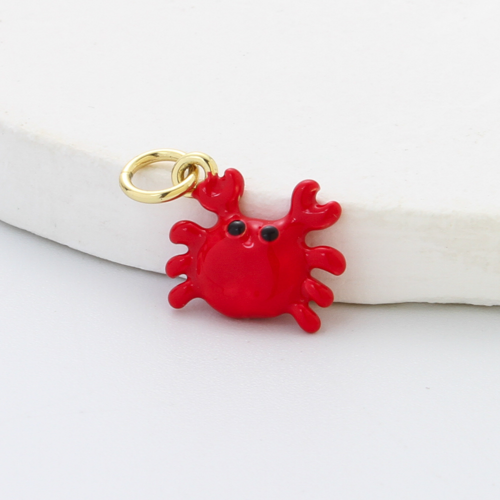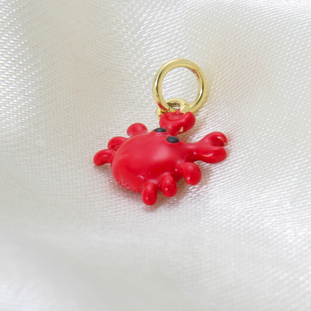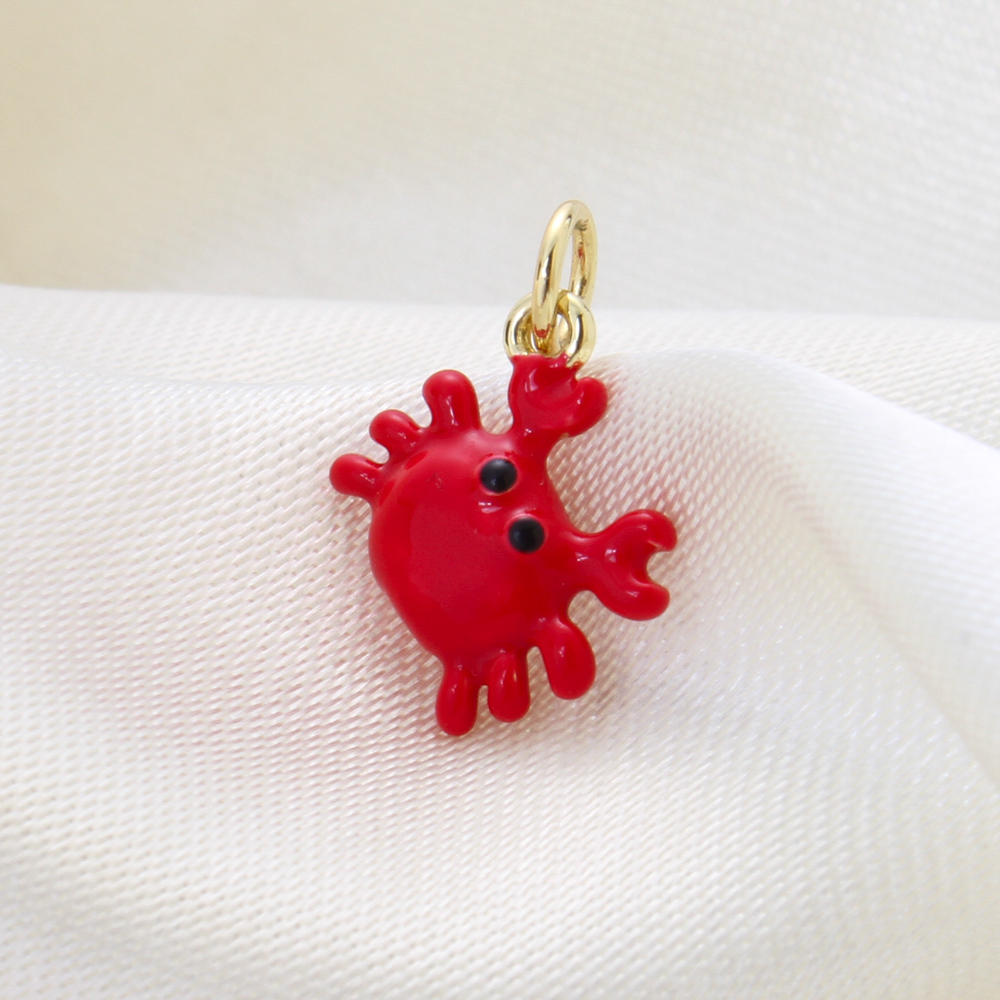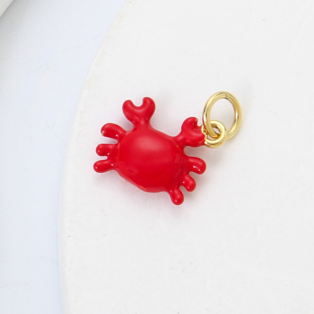 Emaille Messing Anhänger, Krabbe, plattiert, DIY, rot, 10x12.4x3.4mm, verkauft von PC