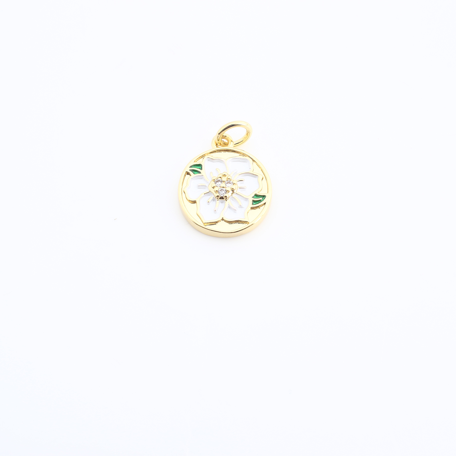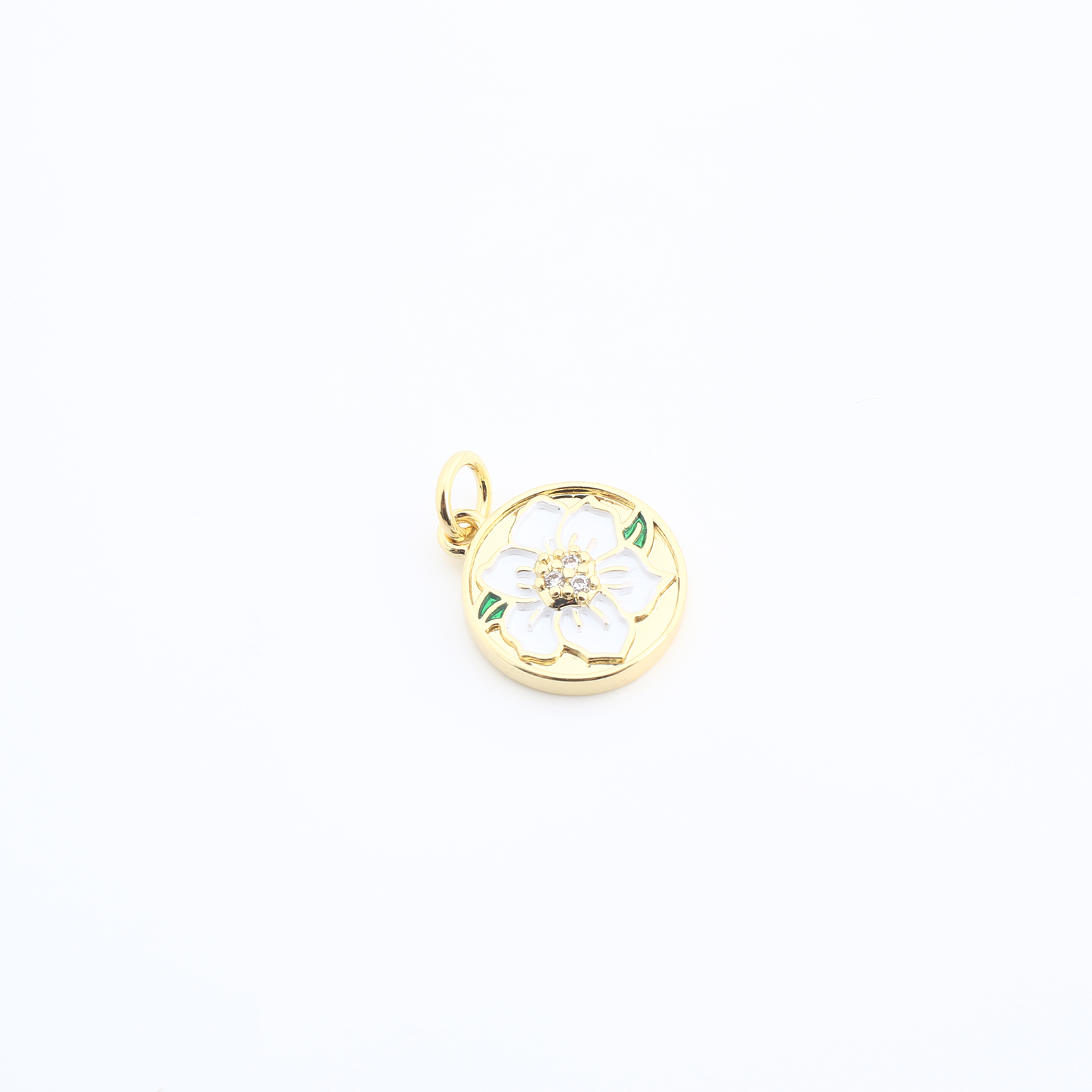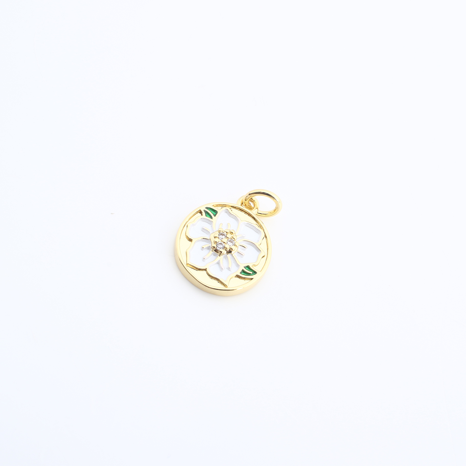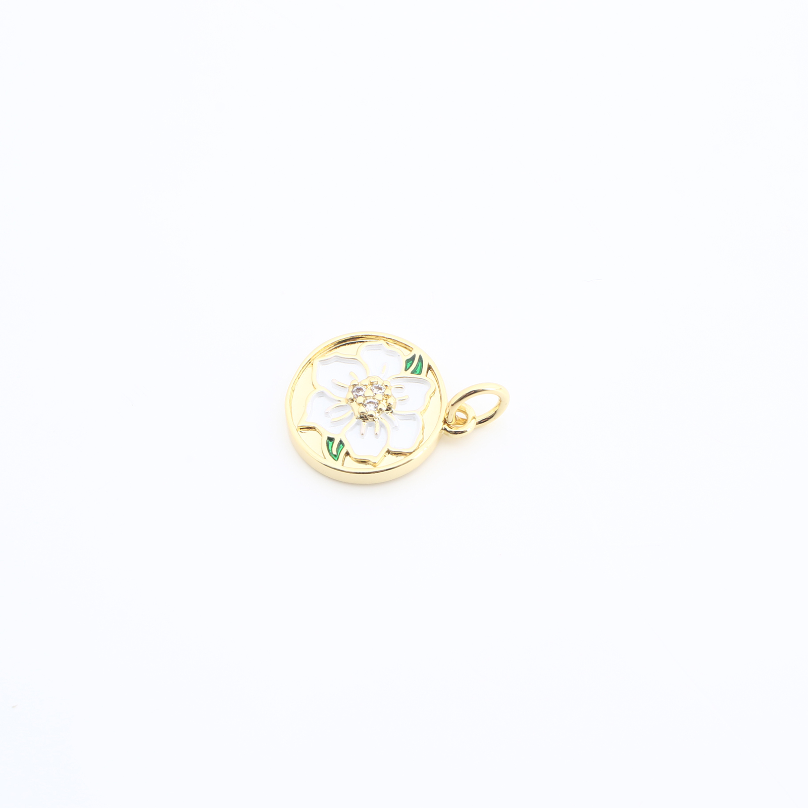 Emaille Messing Anhänger, flache Runde, goldfarben plattiert, DIY & mit Blumenmuster & mit Strass, 12x12x2mm, verkauft von PC
