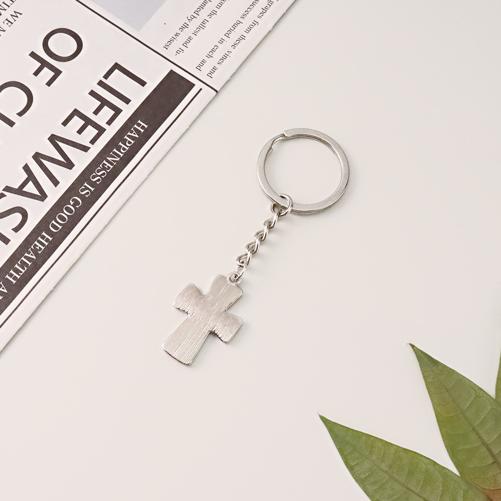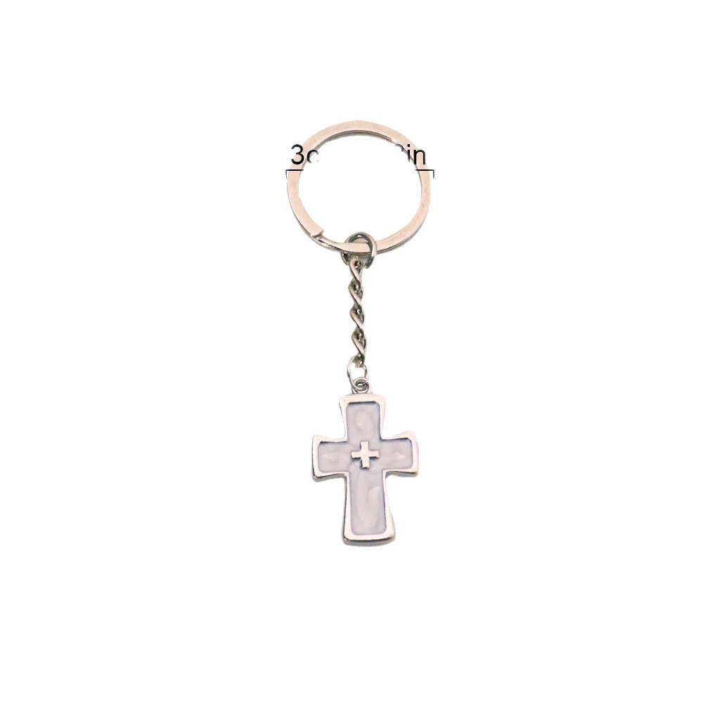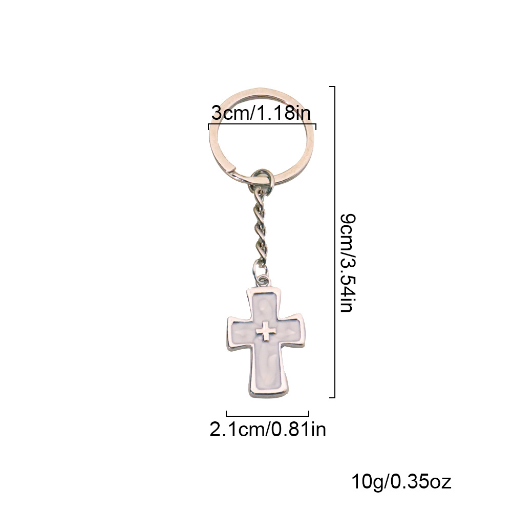 Emaille Zink Legierung Schlüsselanhänger, Zinklegierung, Kreuz, goldfarben plattiert, Modeschmuck, Silberfarbe, verkauft von PC