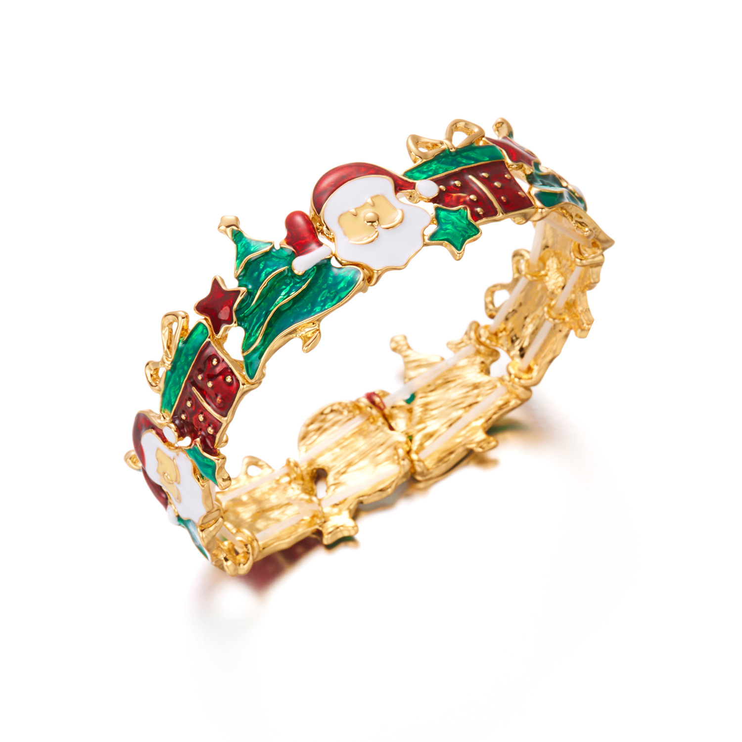 Emaille Zink Legierung Schmucksets, Zinklegierung, Armreif & Ohrring & Halskette, goldfarben plattiert, Weihnachts-Design, keine, verkauft von setzen