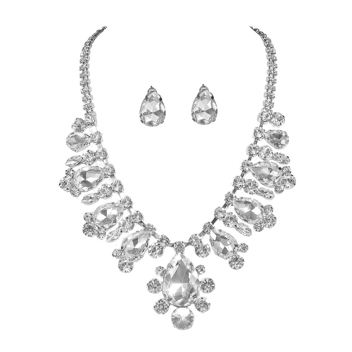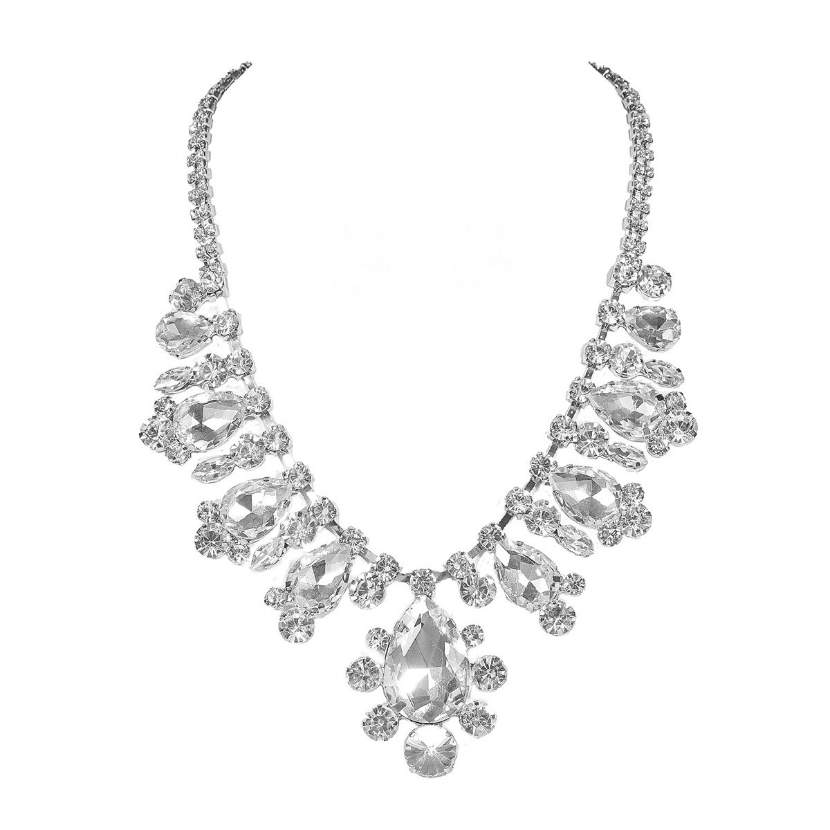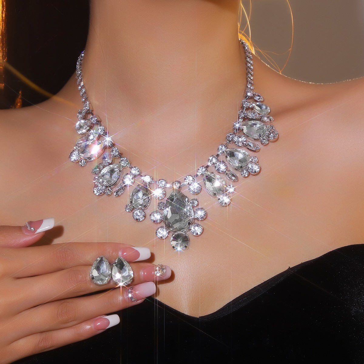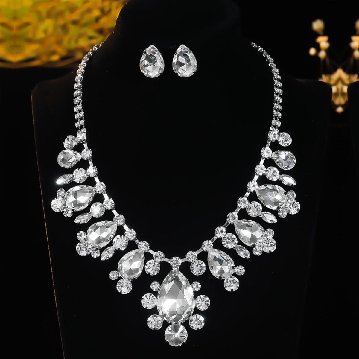 Messing Schmuck Set, Stud Ohrring & Halskette, Modeschmuck & für Frau & mit Strass, weiß, verkauft von setzen