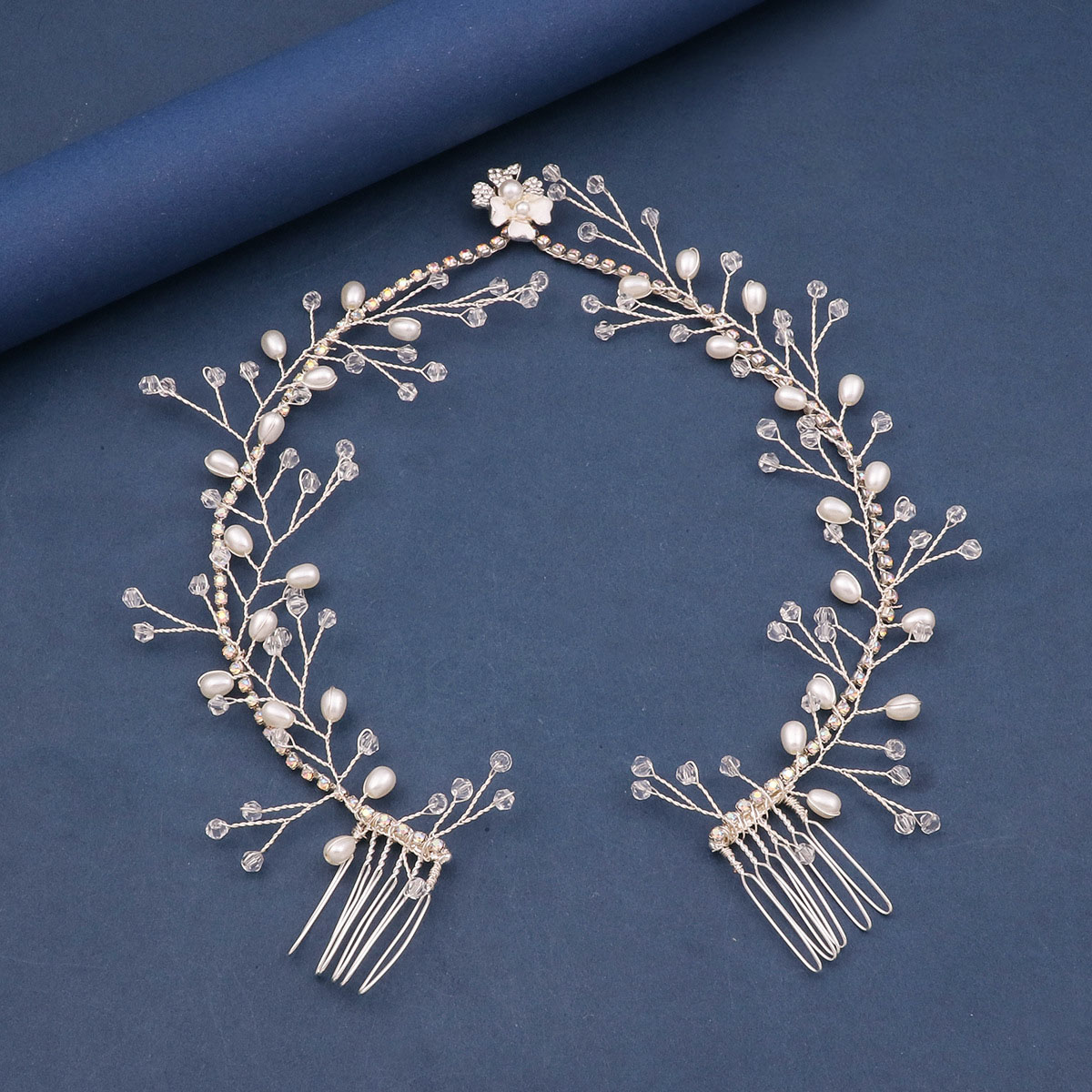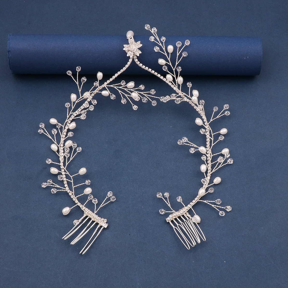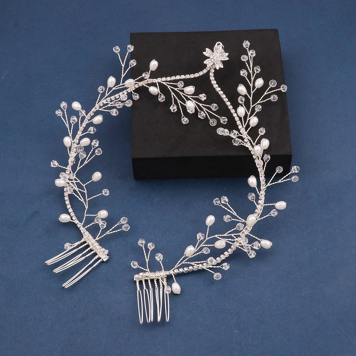 Braut Stirnschmuck, Zinklegierung, mit Messingdraht & Kristall & Kunststoff Perlen, handgemacht, Modeschmuck & für Frau, Silberfarbe, verkauft von PC