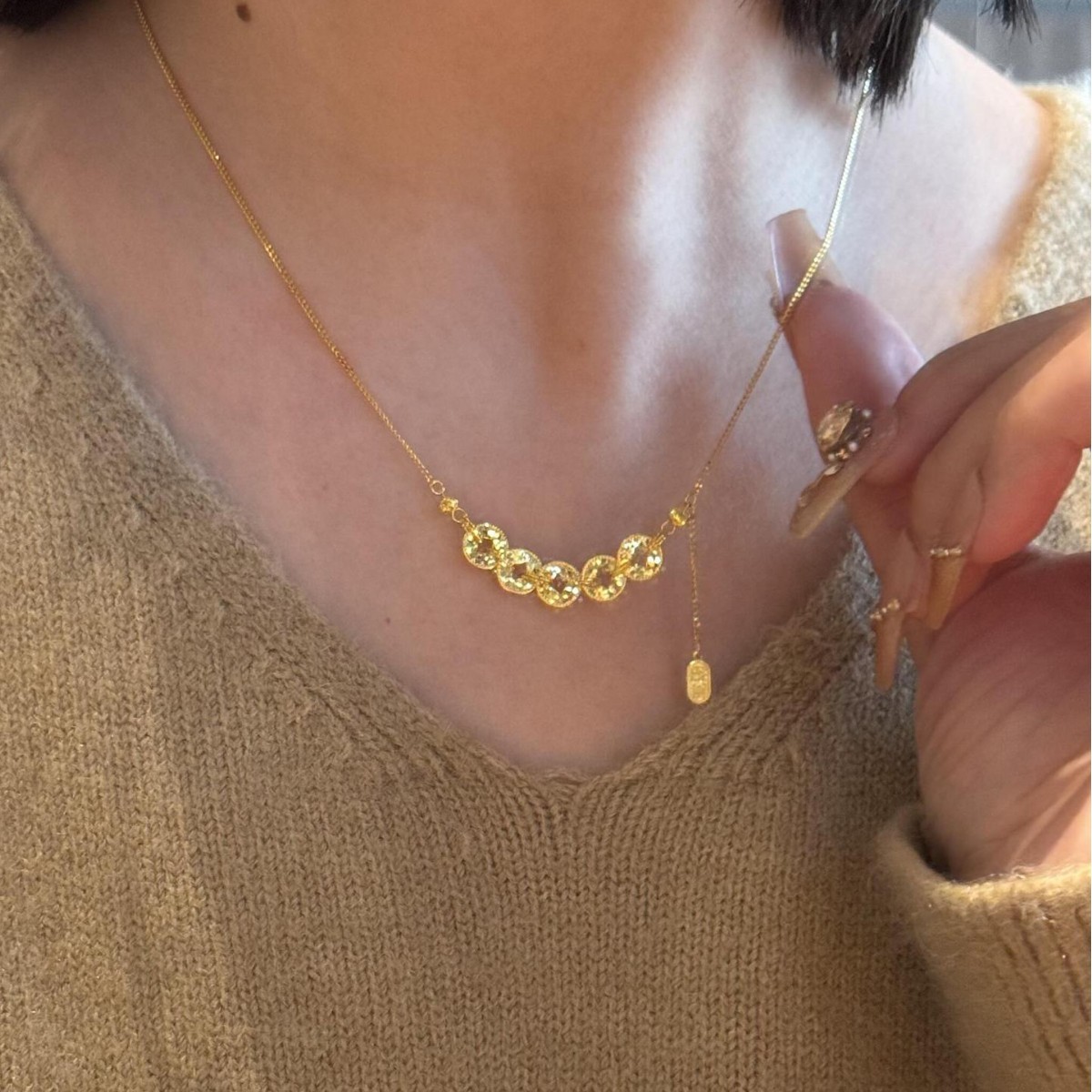 Handgemachte Messinghalskette, Messing, mit Klarer Quarz, goldfarben plattiert, Oval-Kette & für Frau, 26-35mm, Länge:ca. 18.90 ZollInch, verkauft von Strang