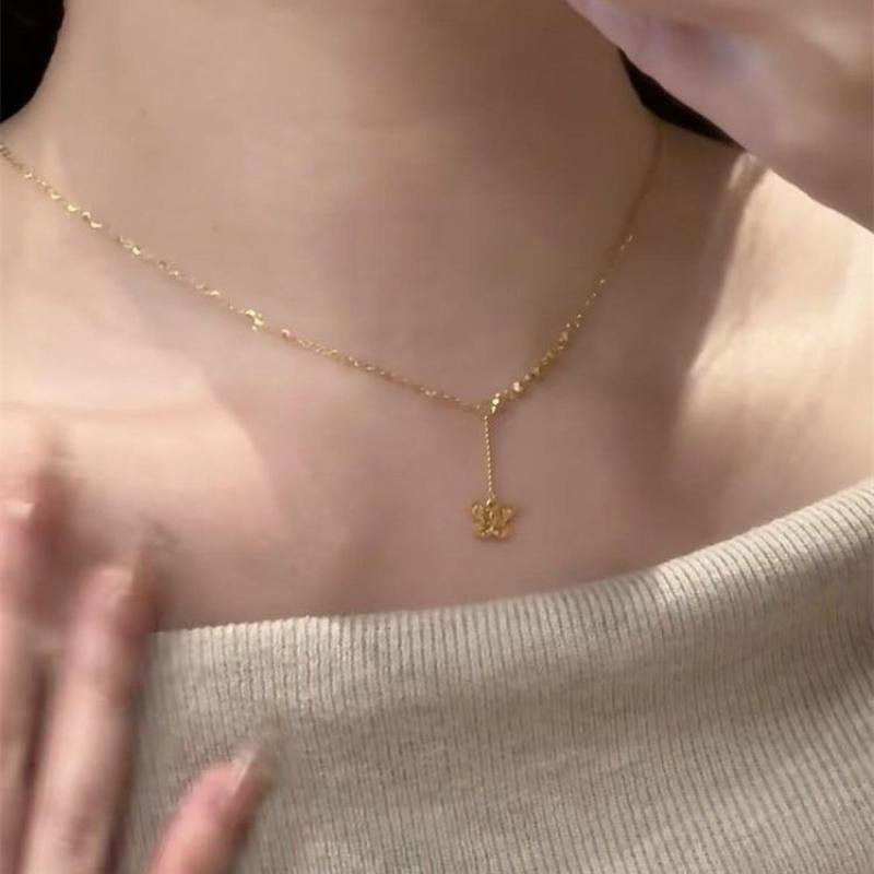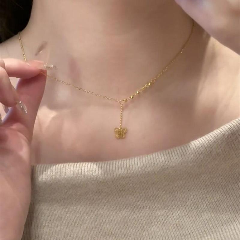 Handgemachte Messinghalskette, Messing, Blume, 24 K vergoldet, für Frau, 11.5x15mm, 2mm, Länge:ca. 19 ZollInch, verkauft von Strang