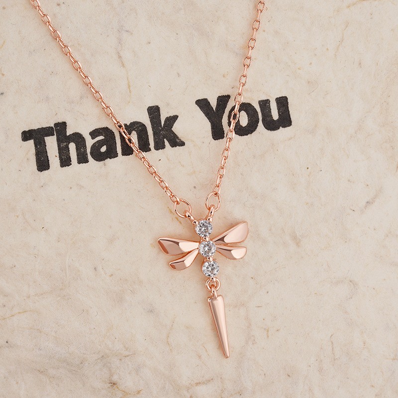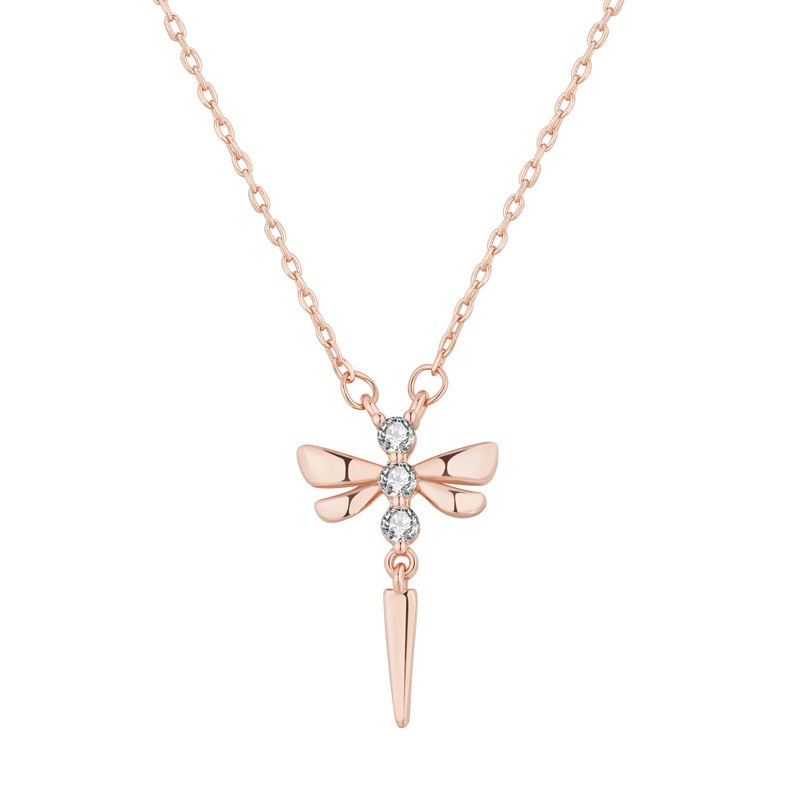 Harz Messing Halskette, mit Verlängerungskettchen von 5cm, Libelle, Modeschmuck & für Frau & mit Strass, Roségold, Länge:ca. 40 cm, verkauft von PC