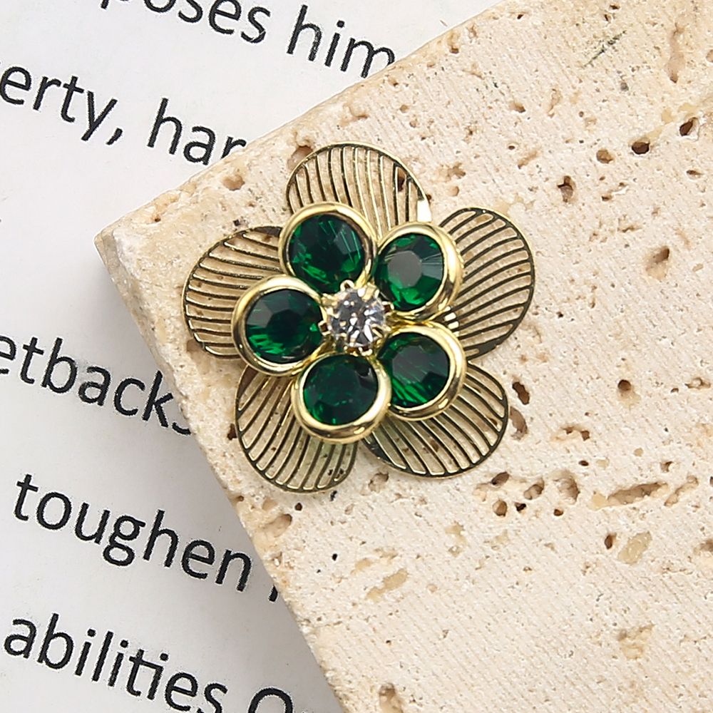 Harz Messing Niet Ohrring, Blume, plattiert, mit Strass, keine, 15x4mm, verkauft von Paar