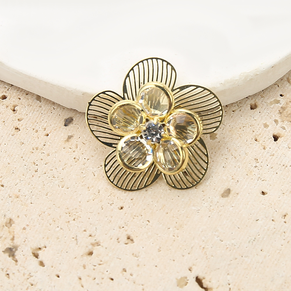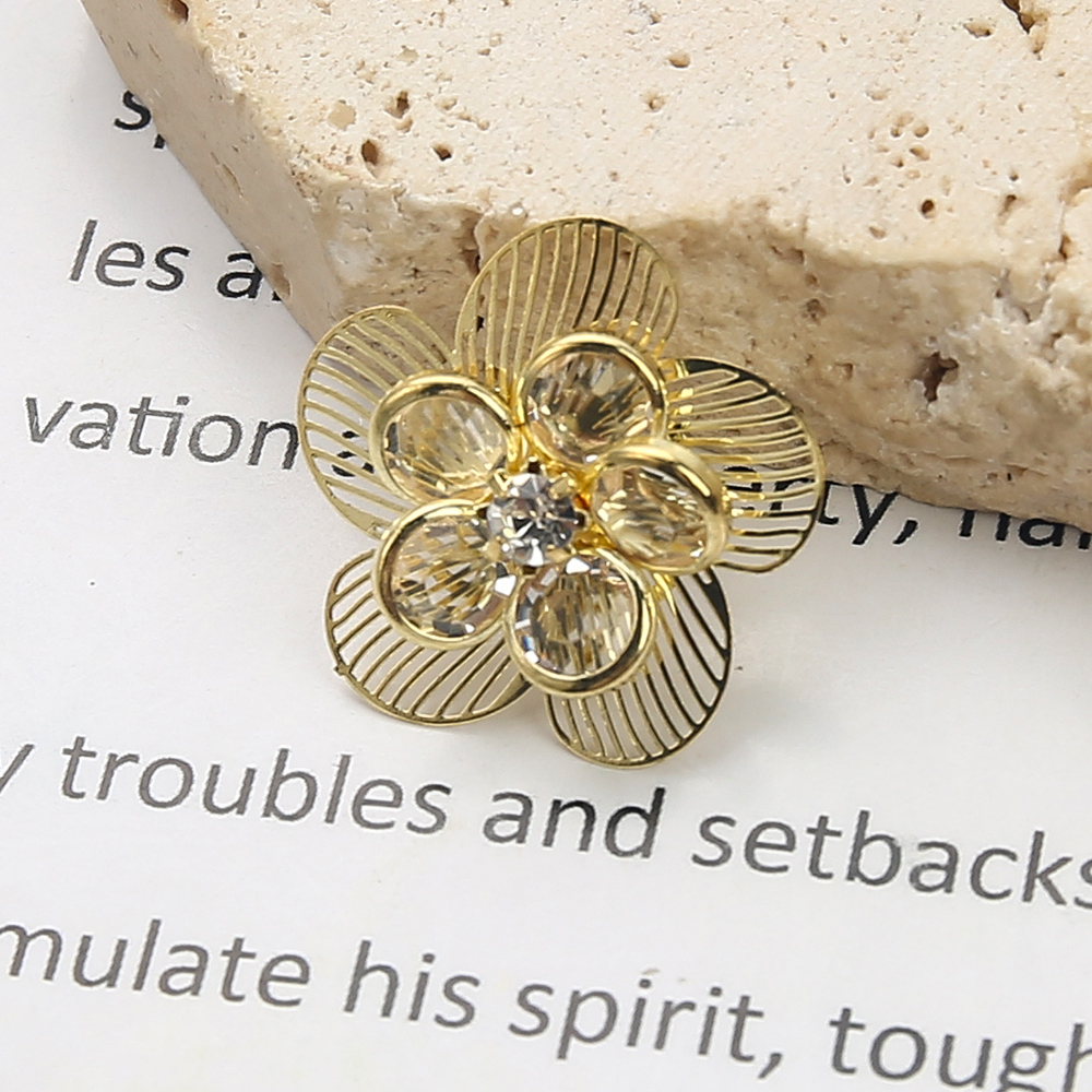 Harz Messing Niet Ohrring, Blume, plattiert, mit Strass, keine, 17x8mm, verkauft von Paar