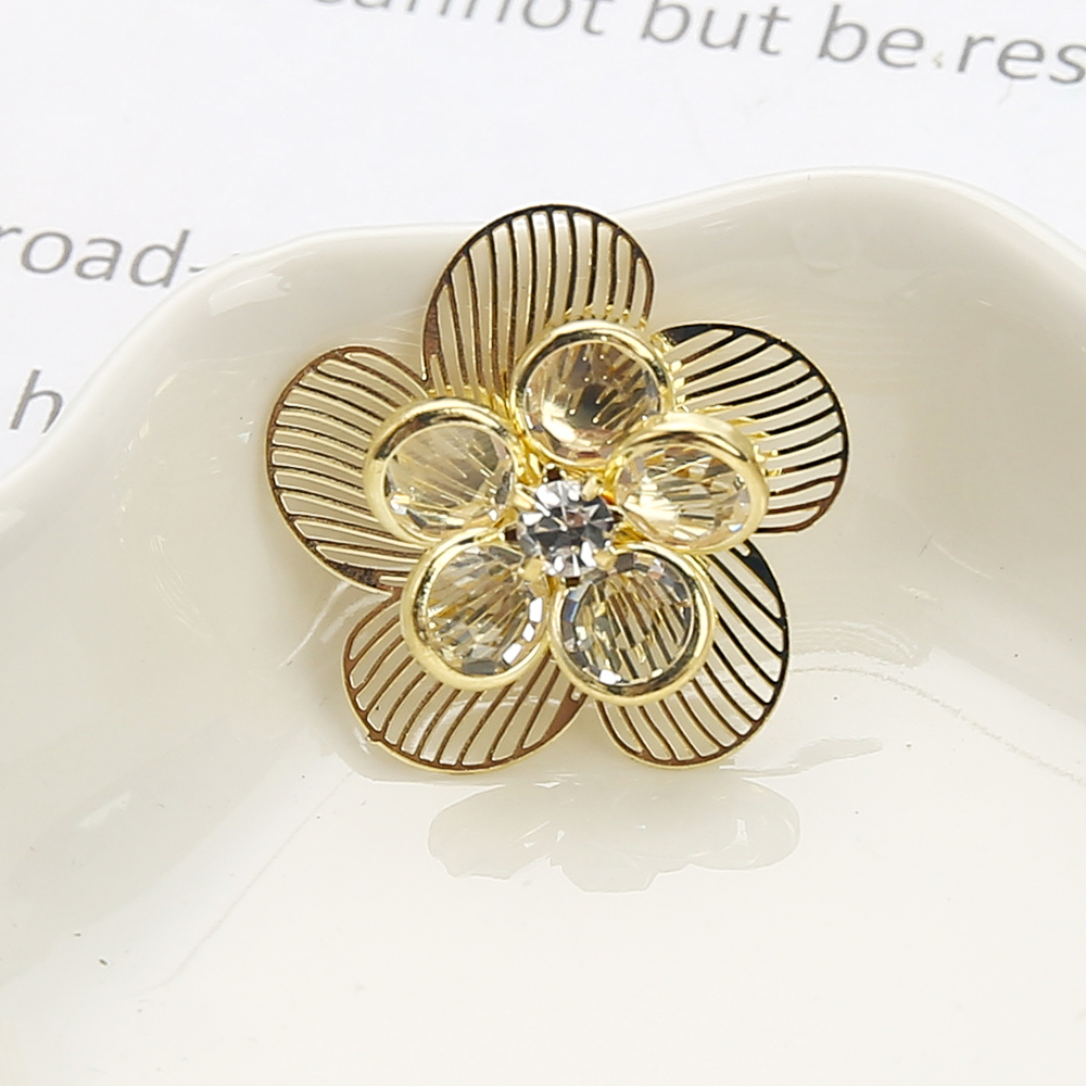 Harz Messing Niet Ohrring, Blume, plattiert, mit Strass, keine, 16x6mm, verkauft von Paar