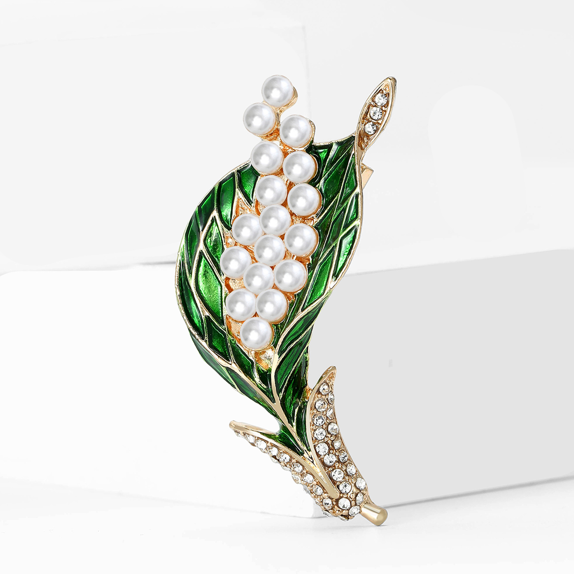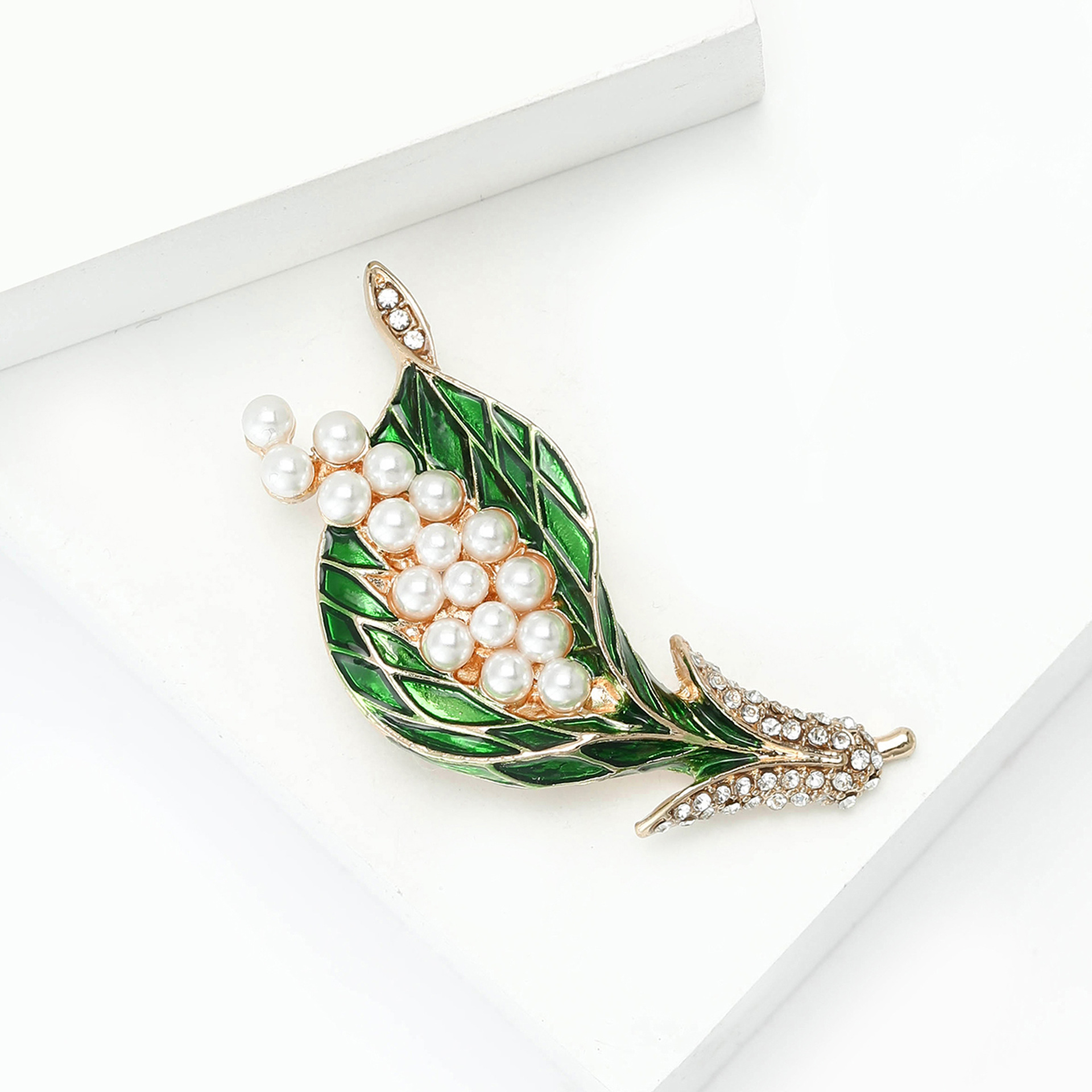 Kunststoff-Perlen-Brosche, Zinklegierung, mit ABS-Kunststoff-Perlen, plattiert, für Frau & Emaille & mit Strass & stumpfmatt, keine, frei von Blei & Kadmium, 54x43mm, verkauft von PC