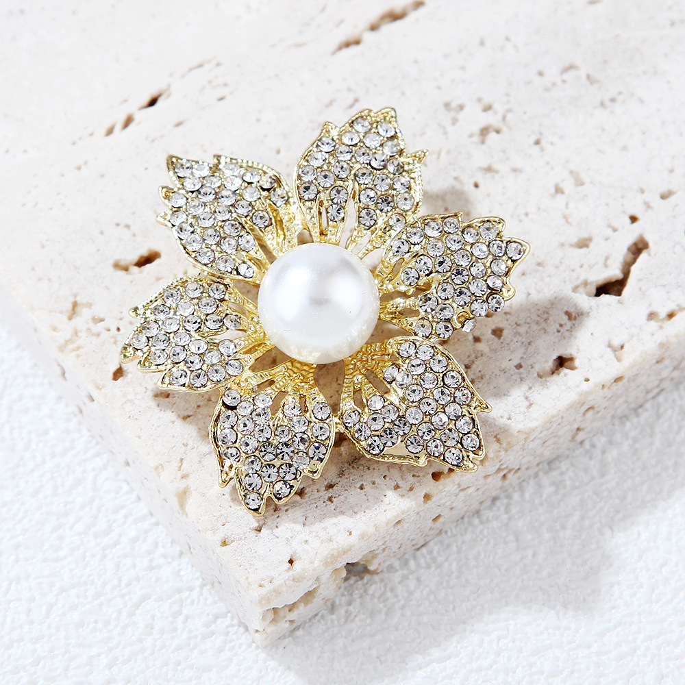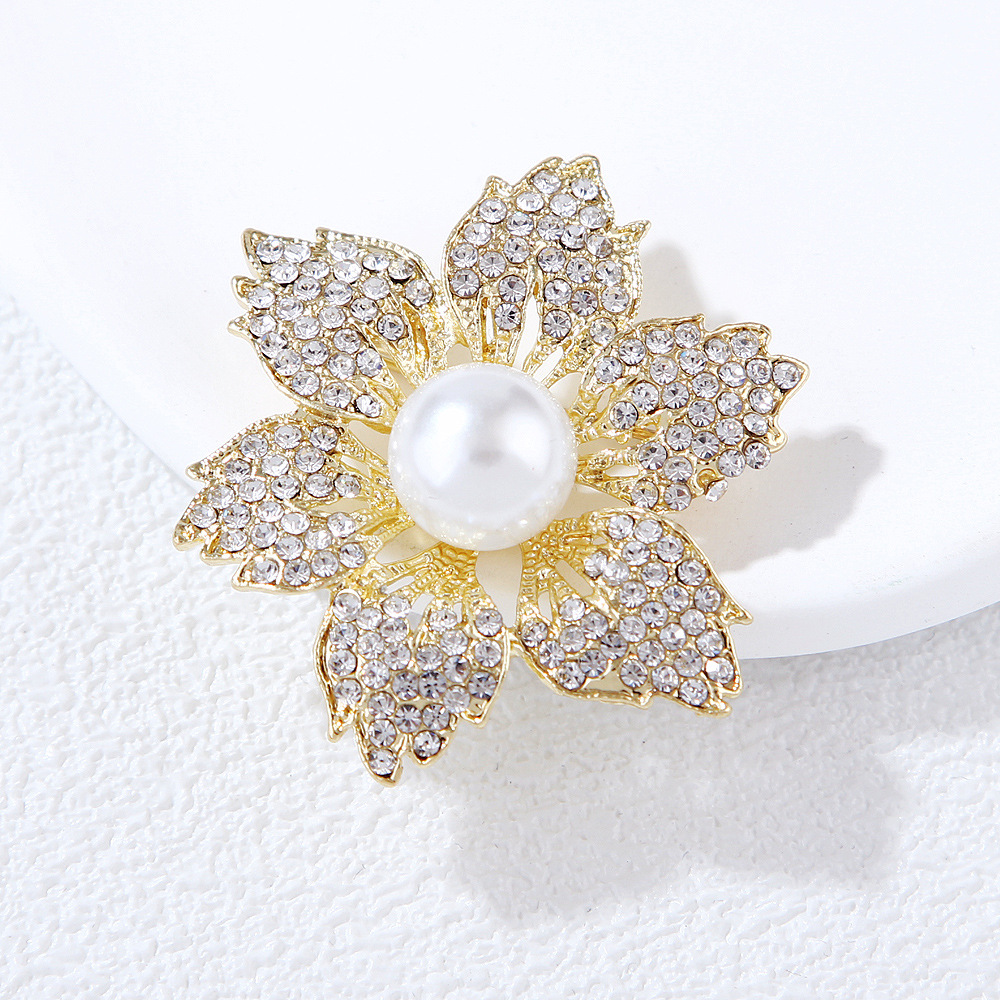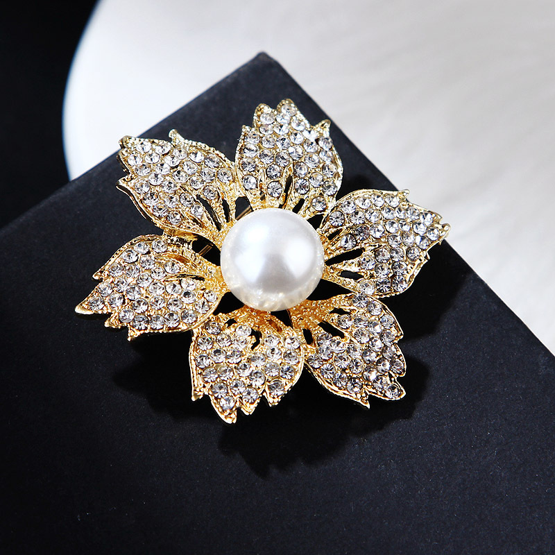 Kunststoff-Perlen-Brosche, Zinklegierung, mit Kunststoff Perlen, Blume, plattiert, Modeschmuck & für Frau & mit Strass, keine, verkauft von PC