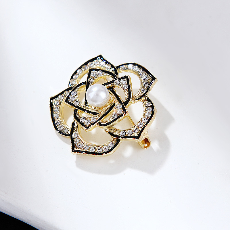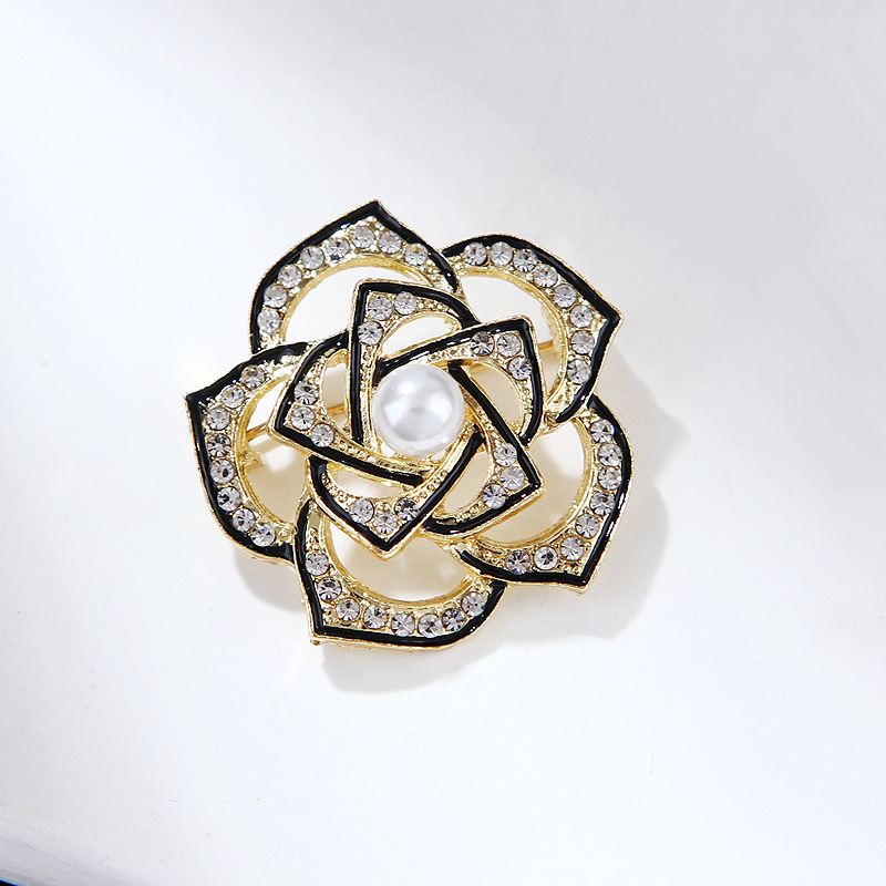 Kunststoff-Perlen-Brosche, Zinklegierung, mit Kunststoff Perlen, Blume, plattiert, unisex & Emaille & mit Strass & hohl, verkauft von PC