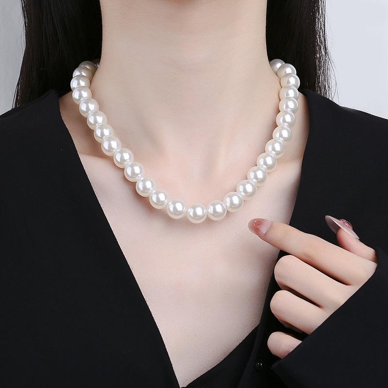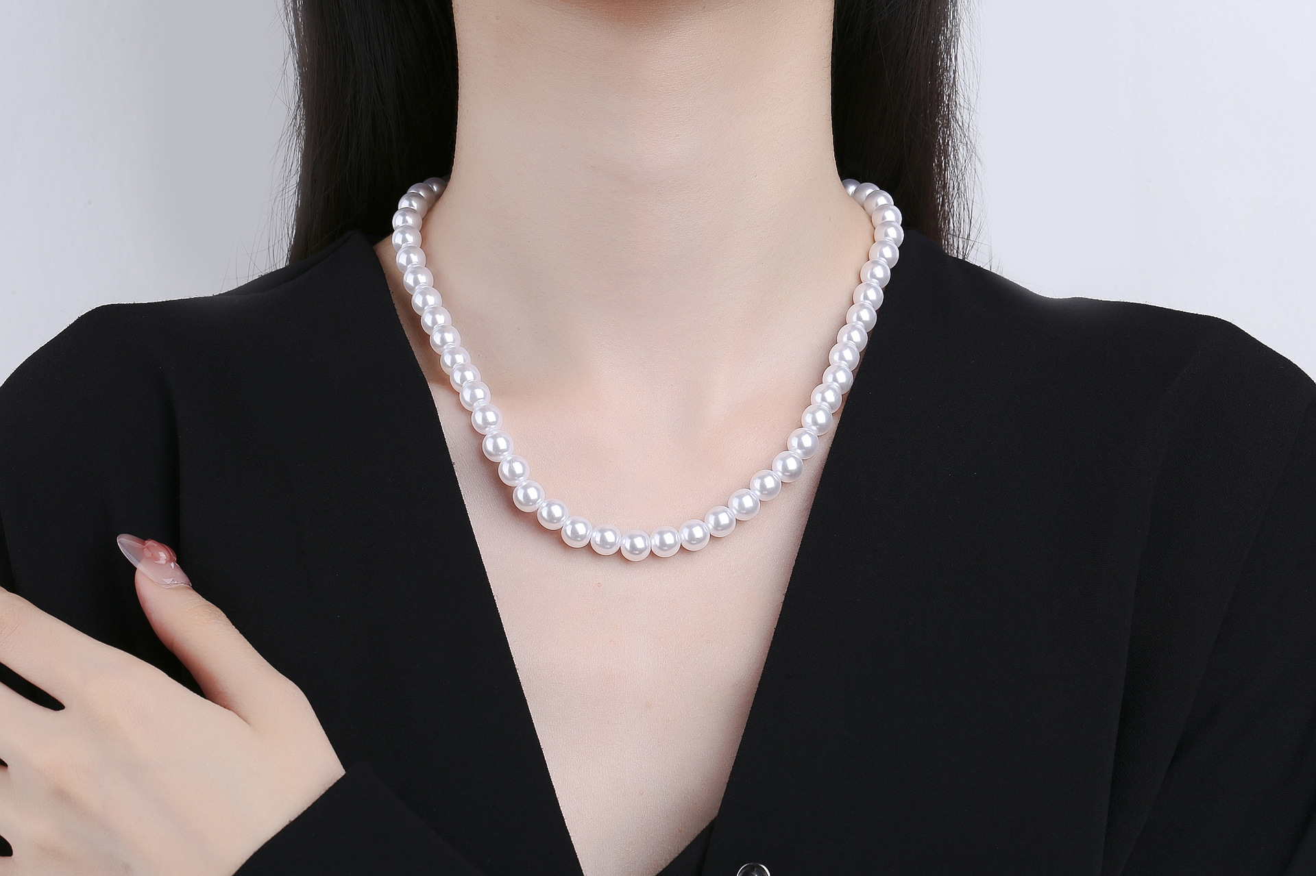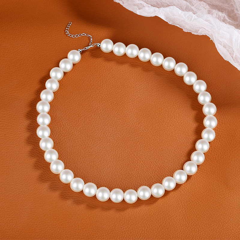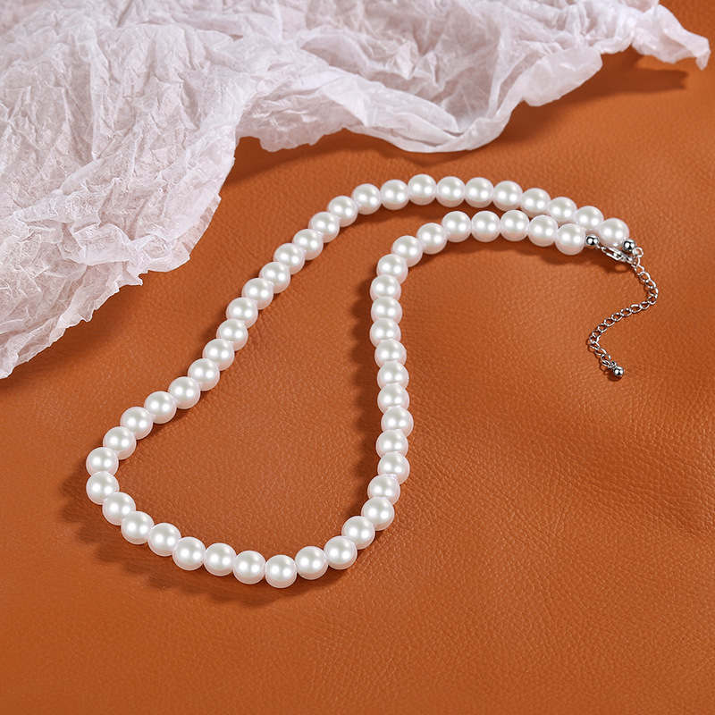 Plastik-Perlenkette, Kunststoff Perlen, mit 304 Edelstahl, Modeschmuck, weiß, 8mm, Länge:45 cm, verkauft von Strang