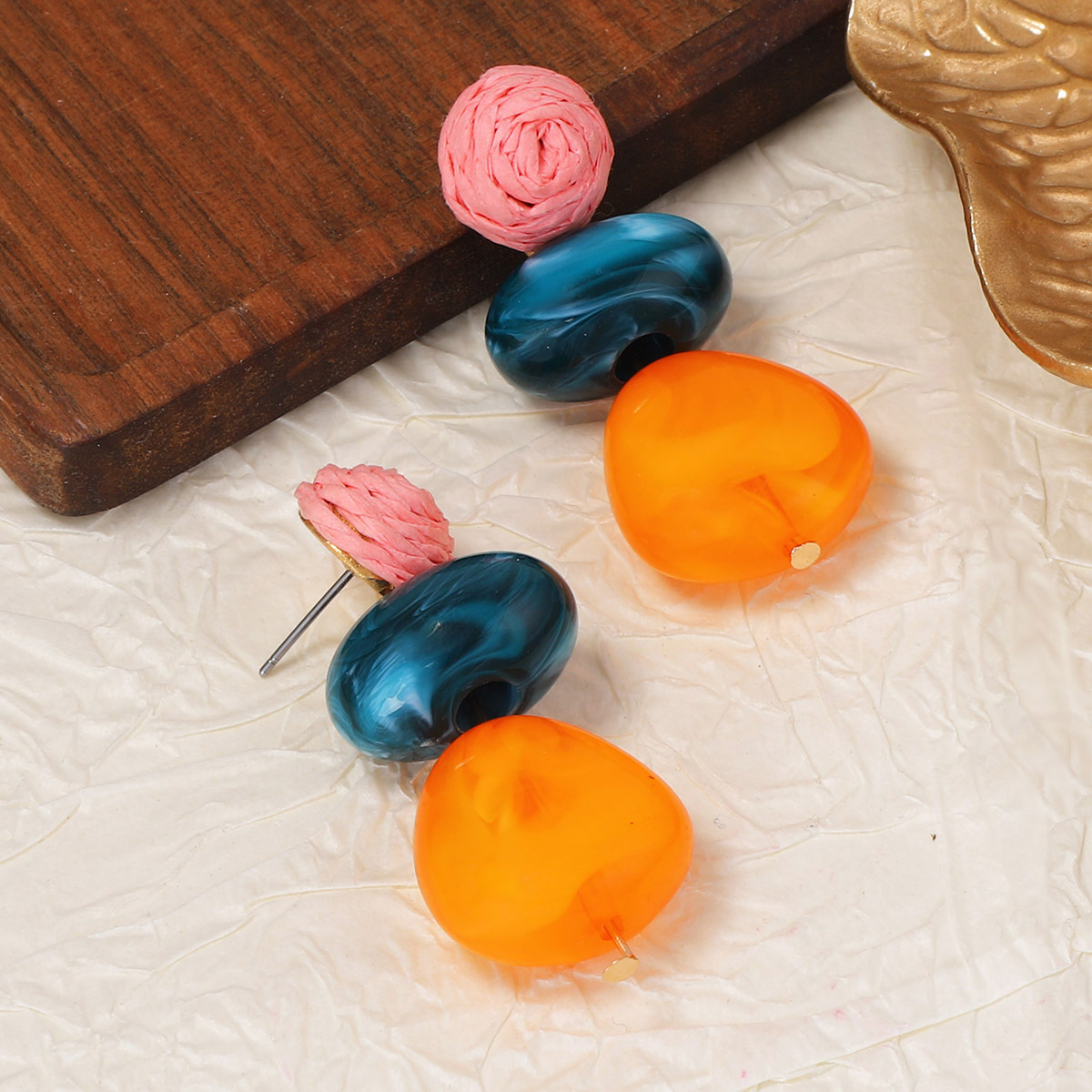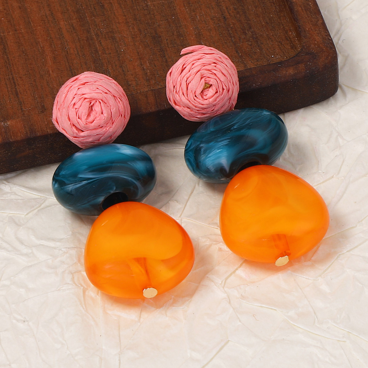 Kunststoff Tropfen Ohrring, mit Papier, plattiert, Modeschmuck & für Frau, farbenfroh, 19x50mm, verkauft von Paar
