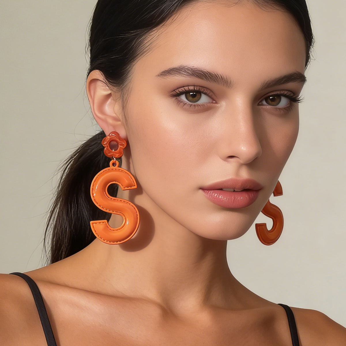 Kunststoff Tropfen Ohrring, plattiert, Modeschmuck & für Frau, orange, 38x84mm, verkauft von Paar