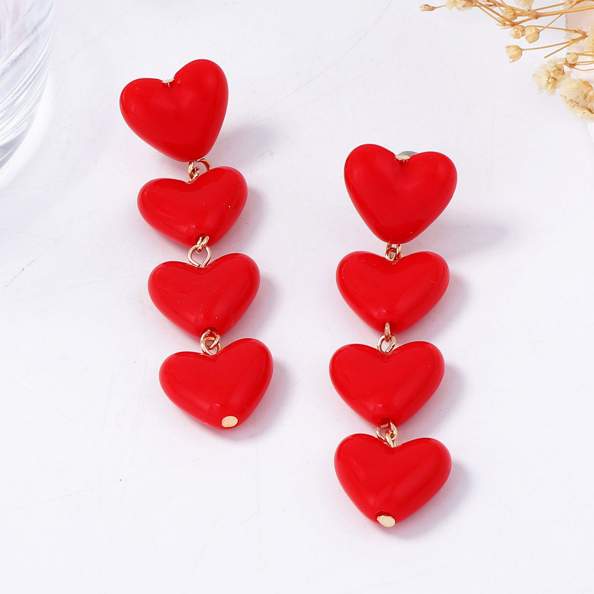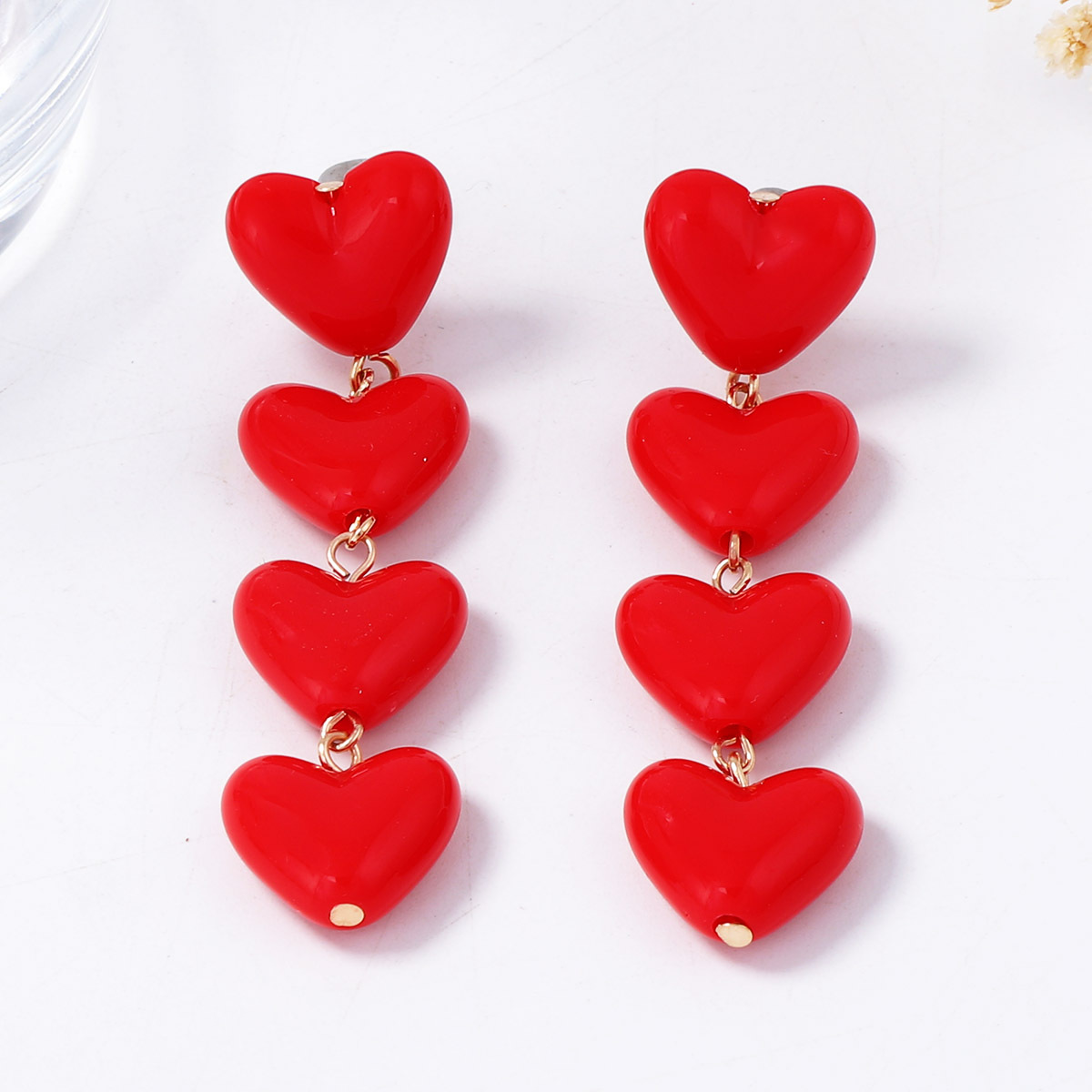 Kunststoff Tropfen Ohrring, Herz, plattiert, Modeschmuck & für Frau, rot, 15x67mm, verkauft von Paar