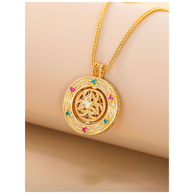 Kupferlegierung Halskette, flache Runde, goldfarben plattiert, für Frau & mit Strass, Länge:ca. 17 ZollInch, verkauft von PC