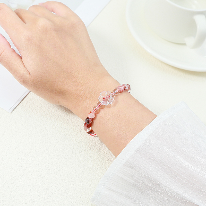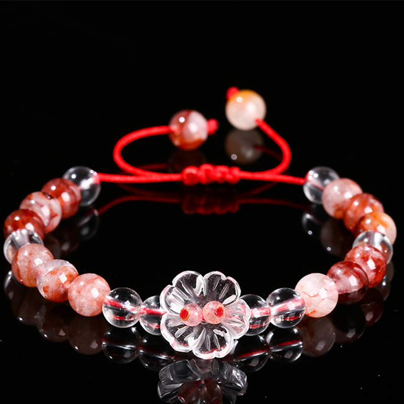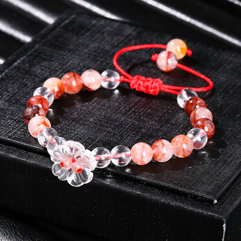 Roter Marmorkleber Stein Armband, mit Terylen Schnur & Klarer Quarz, Blume, handgemacht, natürliche & unisex, Grad AAA, beads length 6mm, Länge:ca. 6-10 ZollInch, verkauft von PC