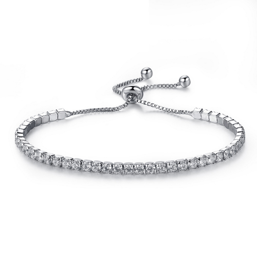 Befestiger Zirkonia Messing Armband, mit kubischer Zirkonia, silberfarben plattiert, einstellbar & Micro pave Zirkonia & für Frau, keine, frei von Nickel, Blei & Kadmium, 190mm,9mm, Länge:ca. 7.4 ZollInch, verkauft von Strang