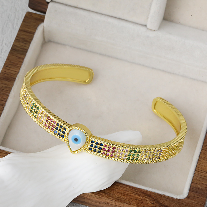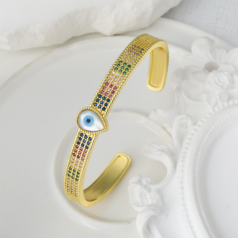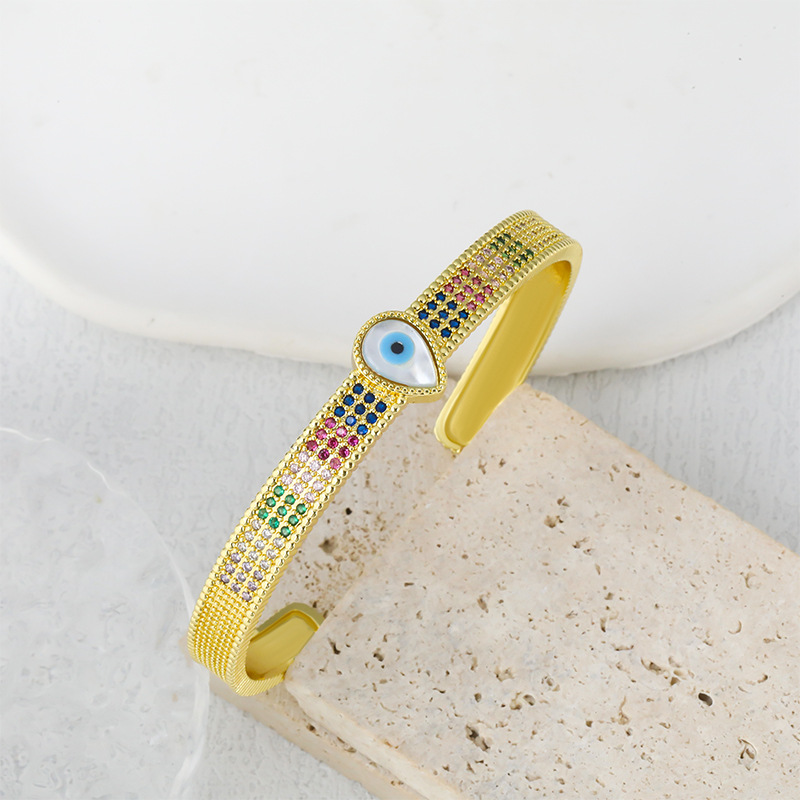 Messing Armreif, mit Harz, plattiert, Modeschmuck & Micro pave Zirkonia, goldfarben, verkauft von PC
