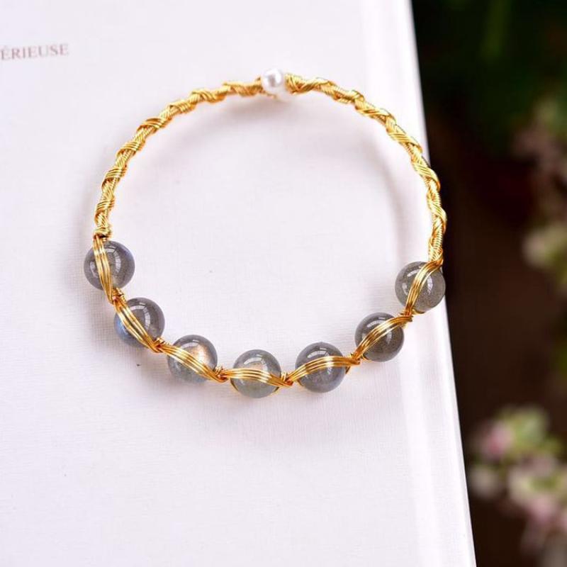 Messing Armreif, mit Mondstein, 14K goldgefüllt, Modeschmuck & für Frau, Inner diameter :55mm, verkauft von PC
