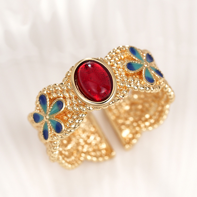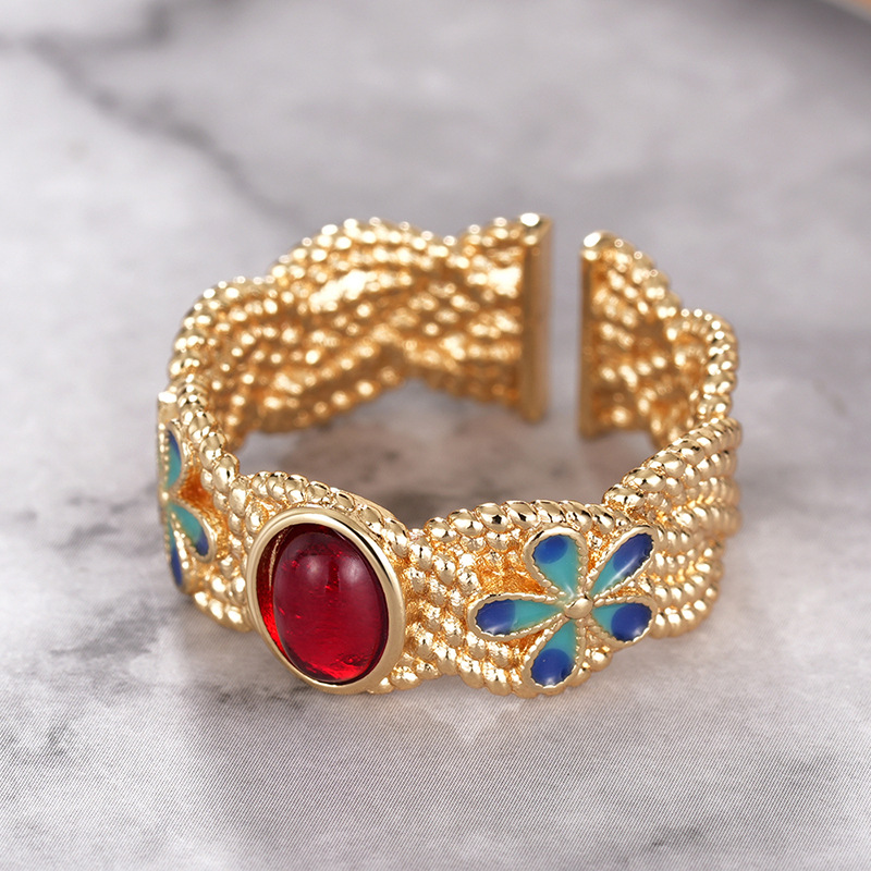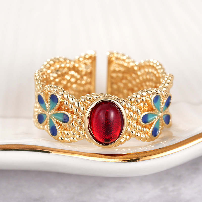 Messing Fingerring, mit Glas, plattiert, Modeschmuck & für Frau & Emaille, verkauft von PC