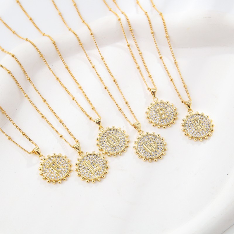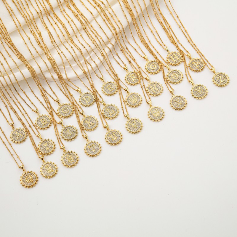 Zirkonia Mikro pflastern Messinghalsketten, Messing, Platinfarbe platiniert, Buchstaben sind von A bis Z & Kastenkette & Micro pave Zirkonia & für Frau, 28mm, Länge:ca. 19.6 ZollInch, verkauft von Strang