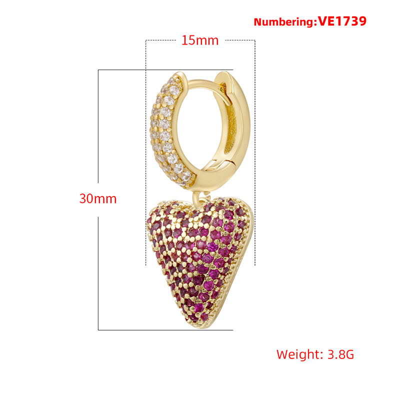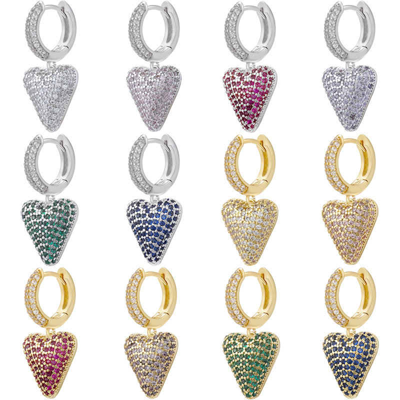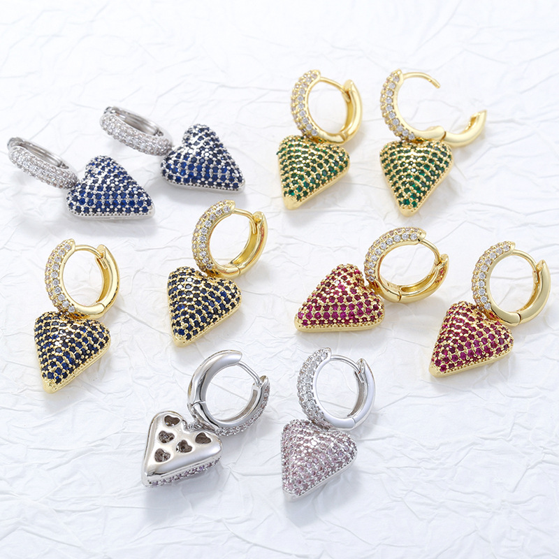 Messing Huggie Hoop Ohrhänger, Herz, plattiert, für Frau & mit Strass, keine, 15x30mm, verkauft von Paar