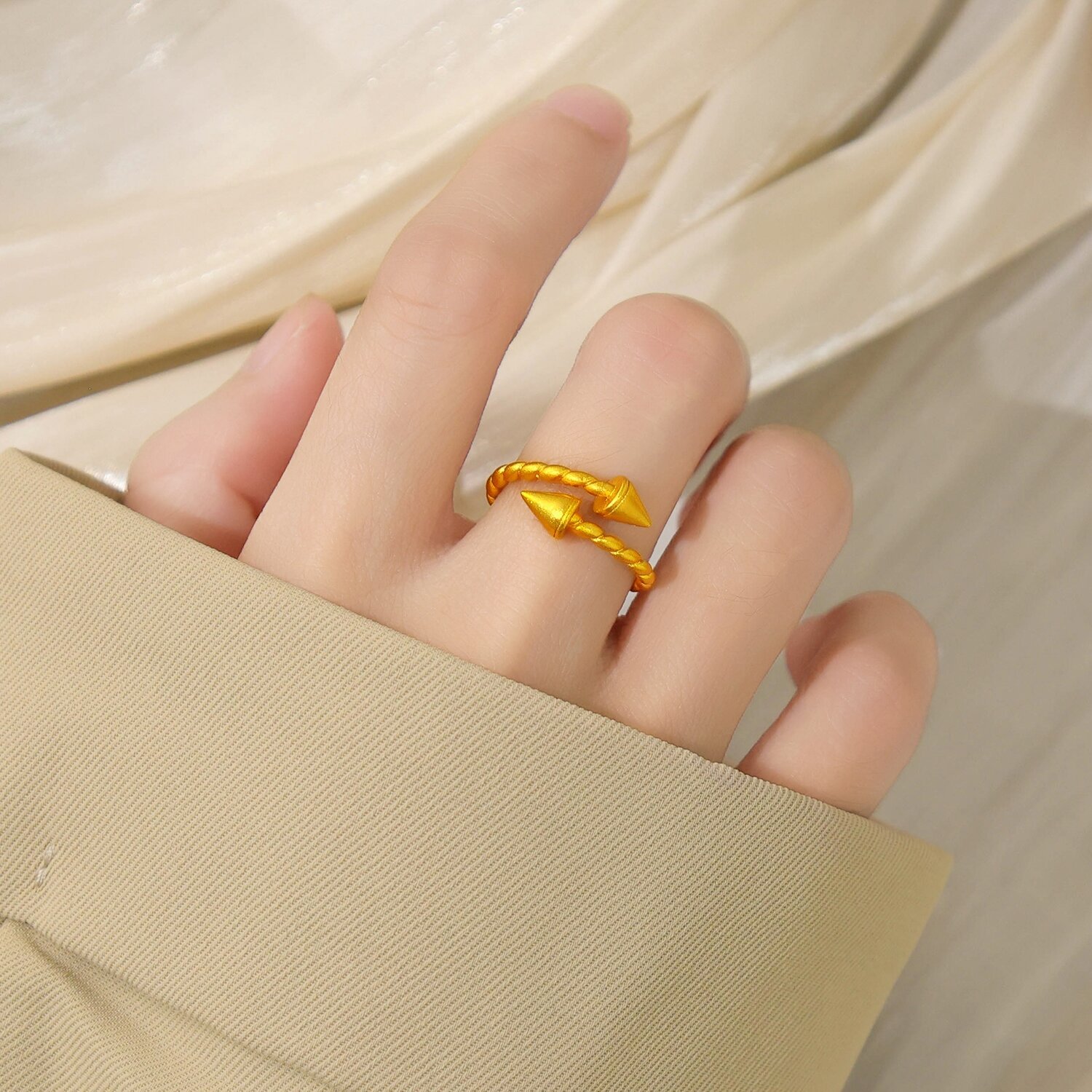 Messing Manschette Fingerring, Pfeilspitze, sang vergoldet, Vintage & für Frau, verkauft von PC