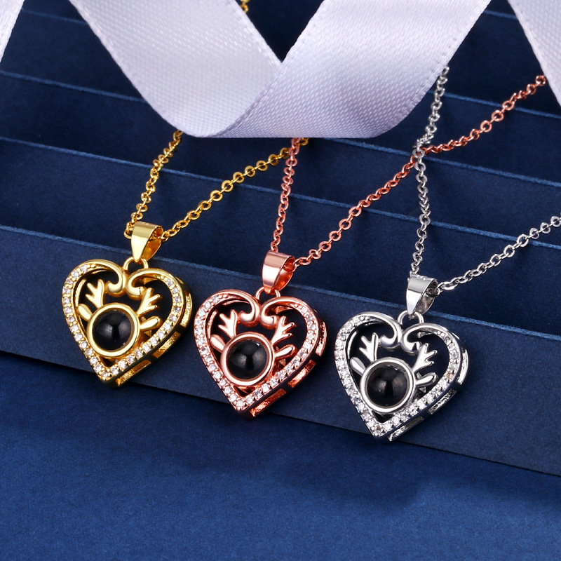Messing Miniatur-Projektion Halskette, mit Glas, Herz, plattiert, Modeschmuck & mit Strass, keine, 20x13.8mm, Länge:ca. 40 cm, verkauft von PC