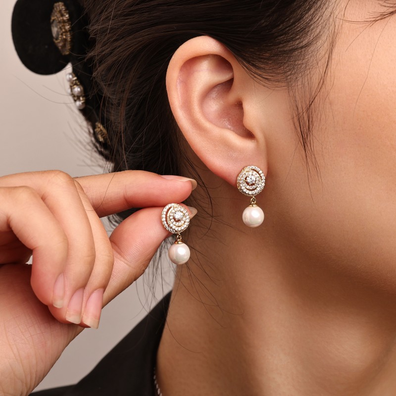 Messing Schmuck Set, Anhänger & Ohrring, goldfarben plattiert, mit kubischem Zirkonia, 10mm, 8mm, verkauft von setzen