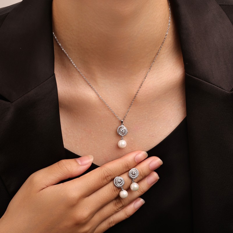Messing Mode Schmuckset, Ohrring & Halskette, mit Kunststoff Perlen, plattiert, 2 Stück & für Frau & mit Strass, keine, verkauft von setzen