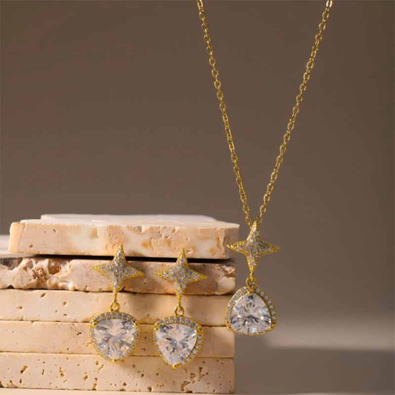 Messing Mode Schmuckset, Stud Ohrring & Halskette, plattiert, 2 Stück & für Frau & mit Strass, keine, verkauft von setzen